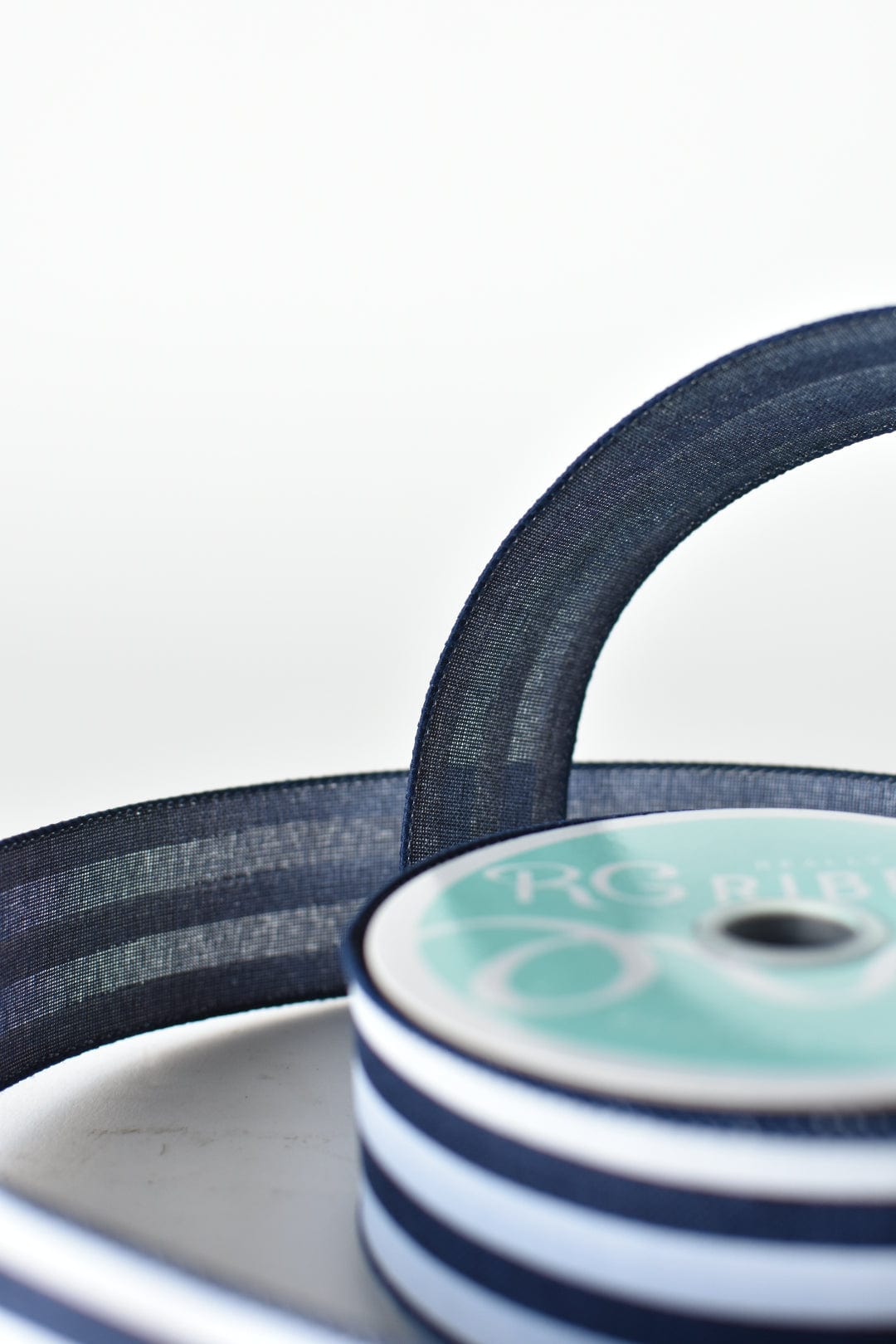 1 1/2" x 10yd Navy and White Stripe Ribbon