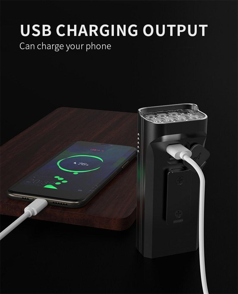 - POWERFUL AND USB: USB rechargeable bicycle light set with built-in powerful rechargeable batteries. No wires or external battery accessories needed. Max output 5000 lumens , light your way max up to 1640ft . Ensure you stay visible the road and cycle safely. Portable, powerful and convenient. 4 hours on high brightness working mode. 10 hours on low brightness working mode.