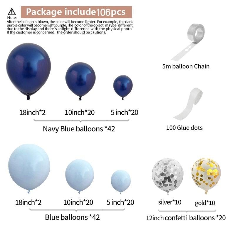 106pcs New Retro Blue Balloon Garland Arch Kit Confetti Balloons For Baby Shower Wedding Birthday Party Anniversary Ballon Decoration Shower Party