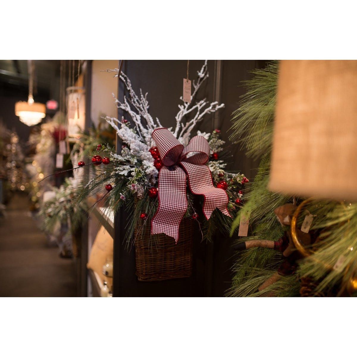 One of our signature items, and a customer favorite! If you're looking for something different than a wreath to put on your front door, this is a great solution! Fill with seasonal floral stems to make your front door incredibly welcoming to your guests!