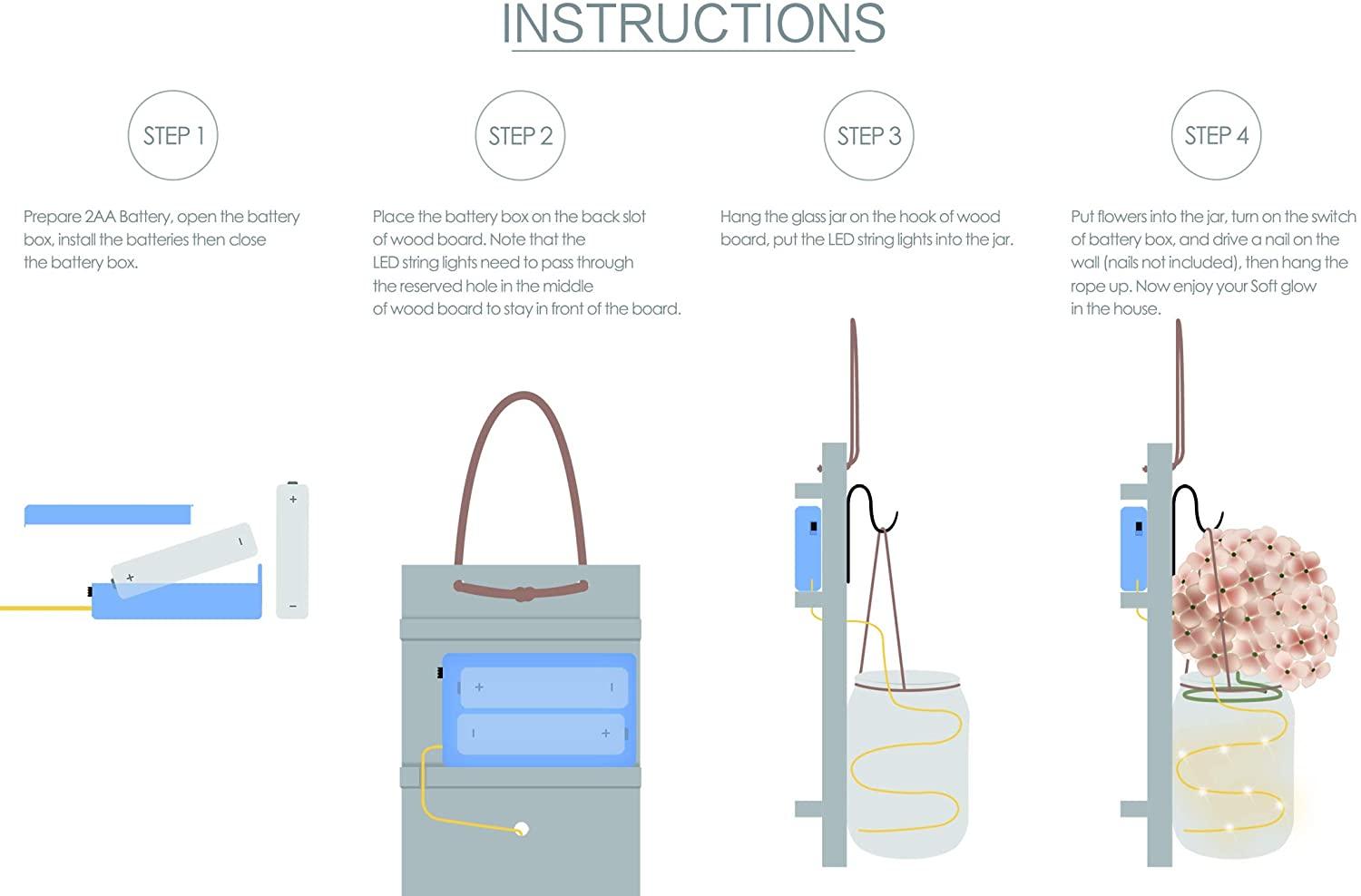 - PERFECT GIFT IDEA - The Farmhouse Sconce could be a super great gift idea and it includes: 2 mason jars, 2 rustic wood holder, 2 strips of LED lights (batteries not included) and 2 silk hydrangea flowers. Perfect gift for your friends, lovers, family and anyone you want to give.