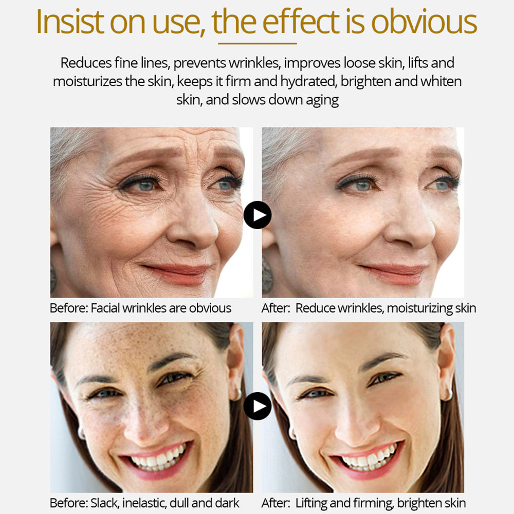 [Product efficacy] three-in-one effect of skin tightening, whitening and wrinkle removal. Contains 24 K pure gold, deeply purifies the skin, integrates a whitening and anti-wrinkle effect, brightens the complexion and improves the elasticity of the skin