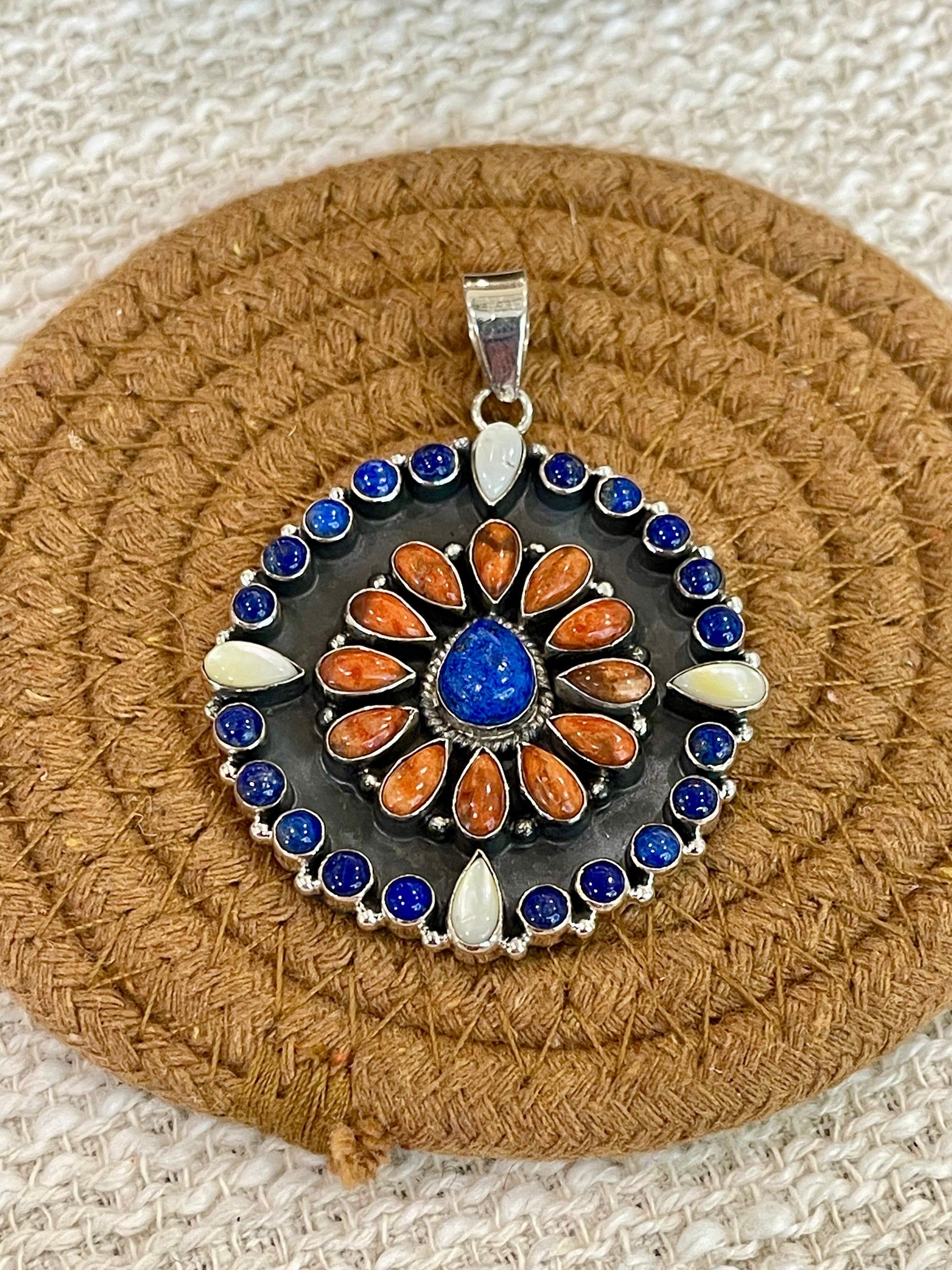 ** 4TH OF JULY ** Handmade Sterling Silver, Lapis Cluster Pendant with Signed Nizhoni
