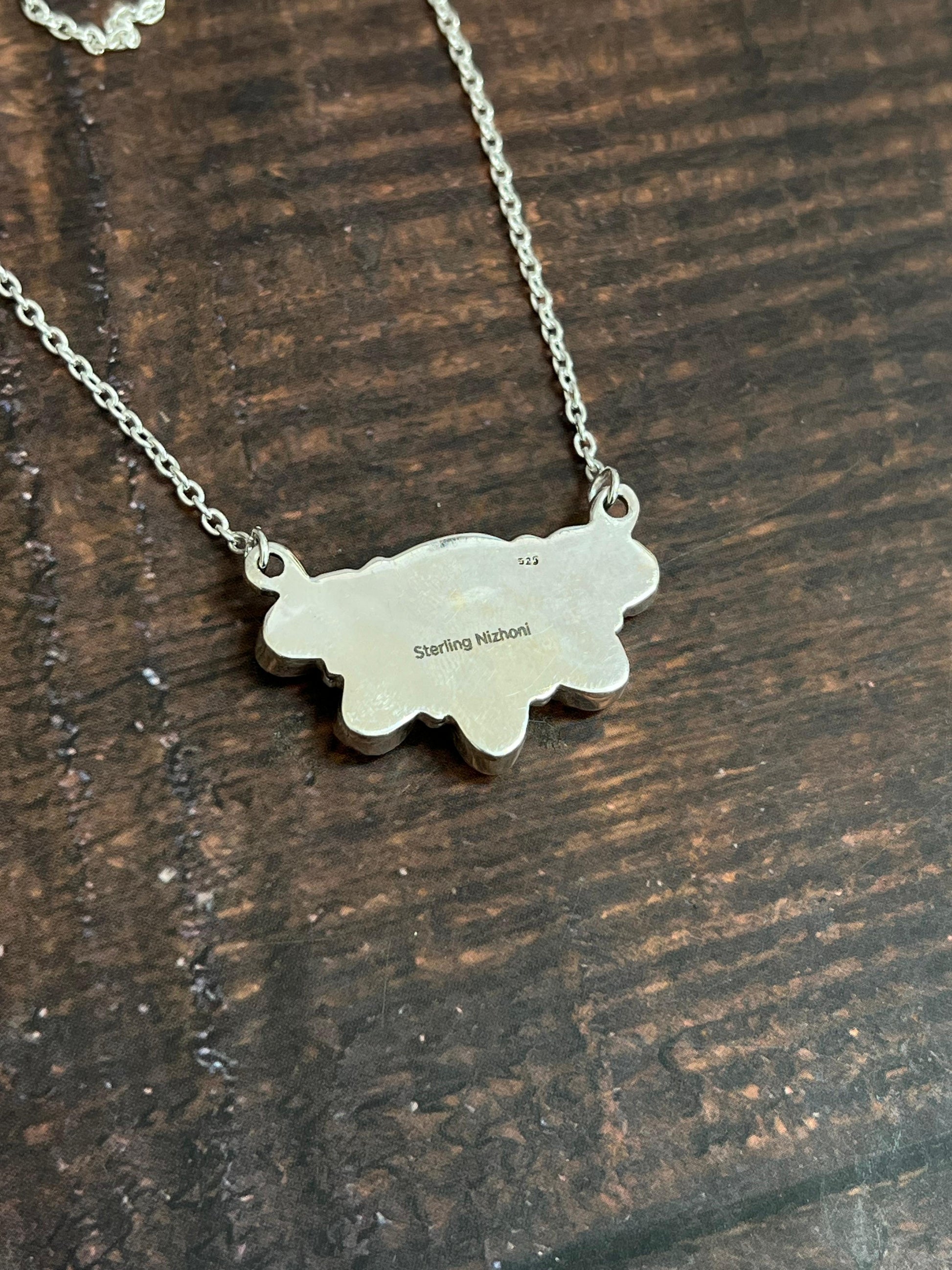 ** 4TH OF JULY ** Handmade Sterling Silver Synthetic Opal Necklace with Signed Nizhoni