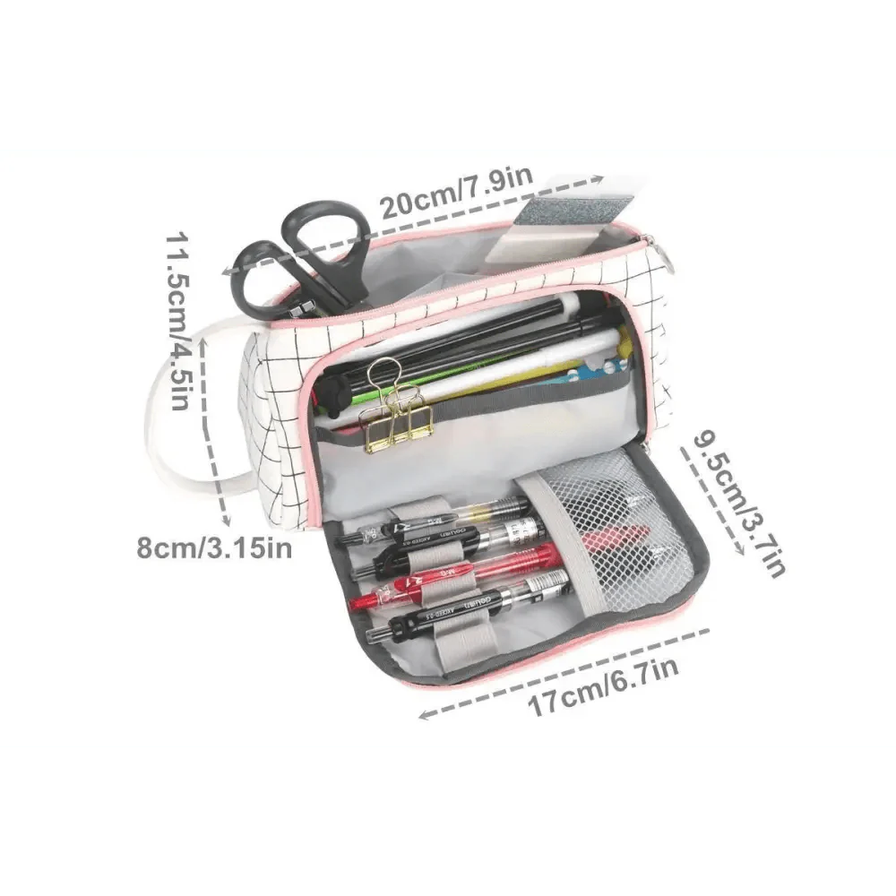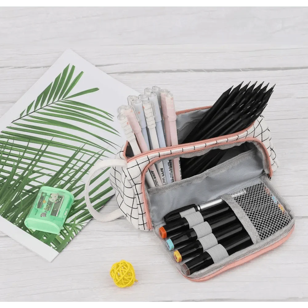 Big Storage Large Capacity Pencil Case Kids Pencil Bag For Students Vintage Grid Print Fabric Stationary Bag School Supply