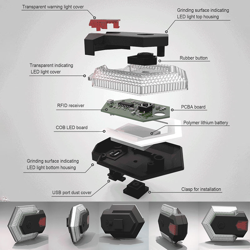 3.Together with smart remote control, easily control the right/left turn signal, emergency light and alert guides, provide great safety for cyclist during night time or rainy day