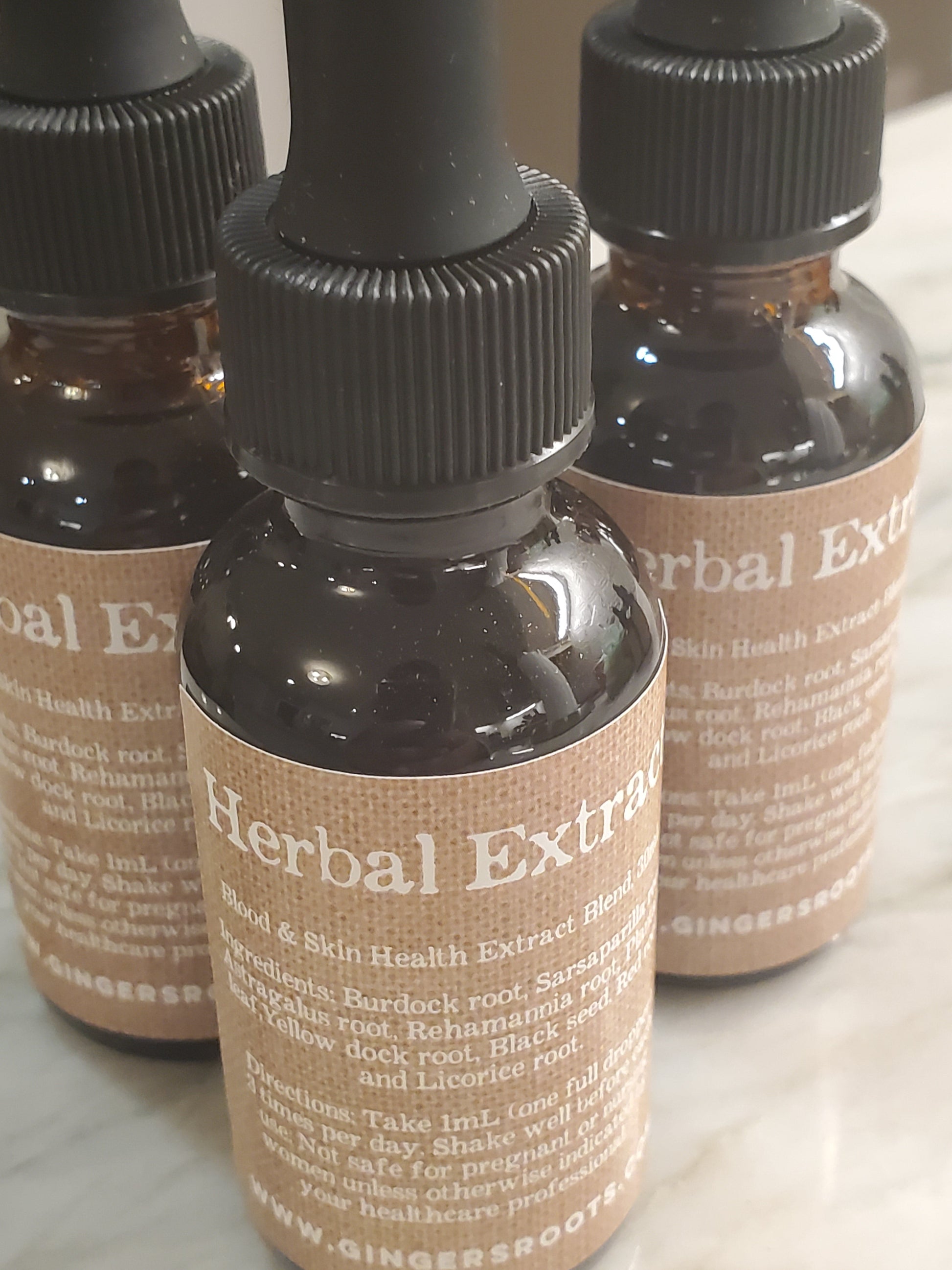 Ingredients: Arctium lappa (burdock root), Ceanothus americanus (red root), Smilax ornata-regelii (sarsaparilla root), Plantago major/lanceolata (plantain leaf), Rehamannia glutinosa (rehmannia root), Nigella sativa (black seed), Rumex crispus (yellow dock root), Glycyrrhiza glabra (licorice root), distilled water, organic cane alcohol (35-40%)