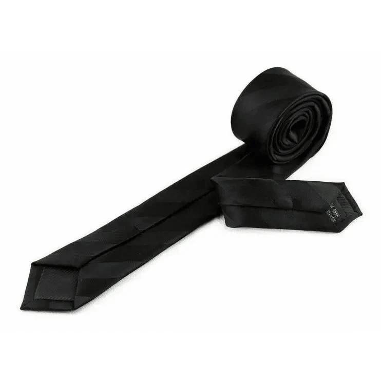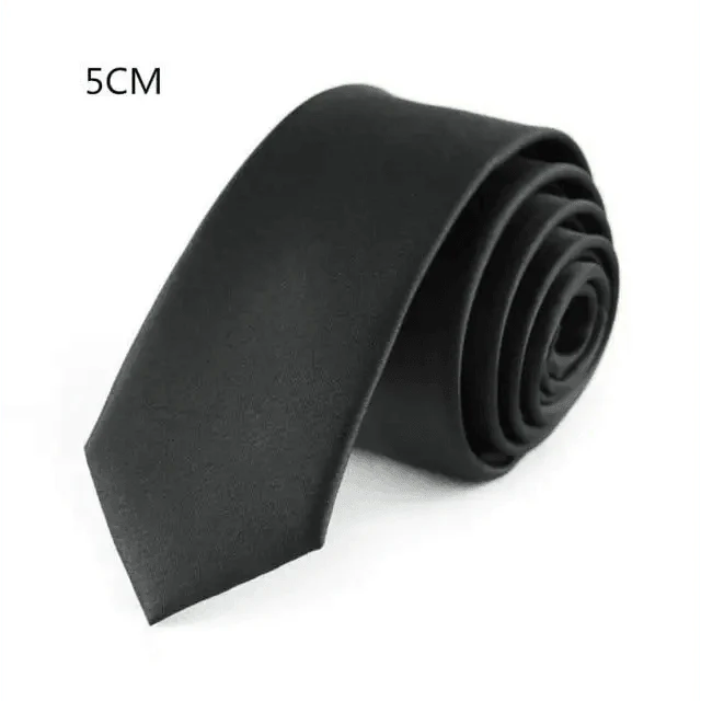 Business Black Skinny Ties Polyester Silk Necktie For Men Washable Formal Office Simple Design Necties Solid Color Skinny Tie Slim Necktie For Men