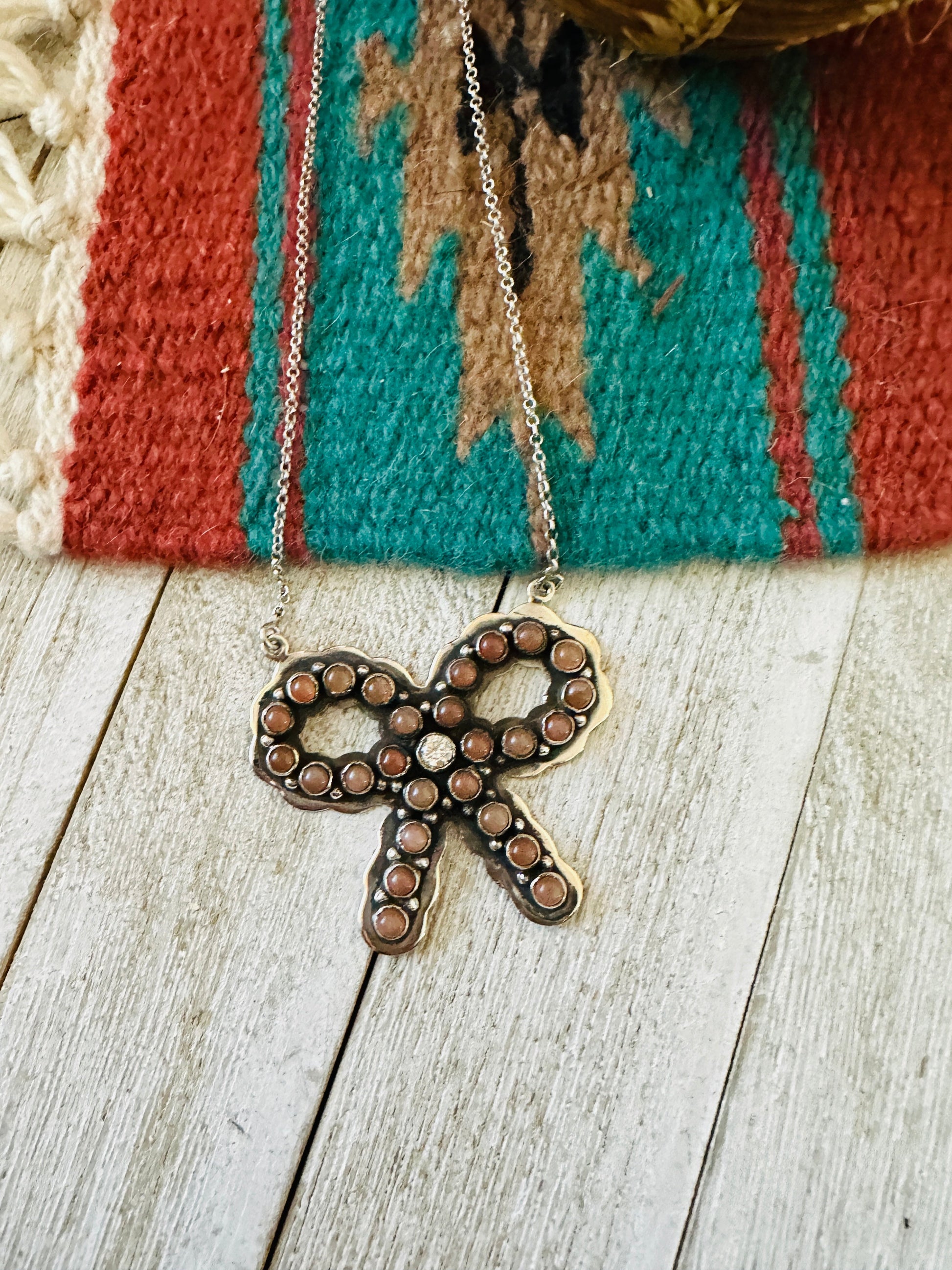** Christmas Collection ** Handmade Sterling Silver, Mother of Pearl & CZ Bow Necklace Signed Nizhoni