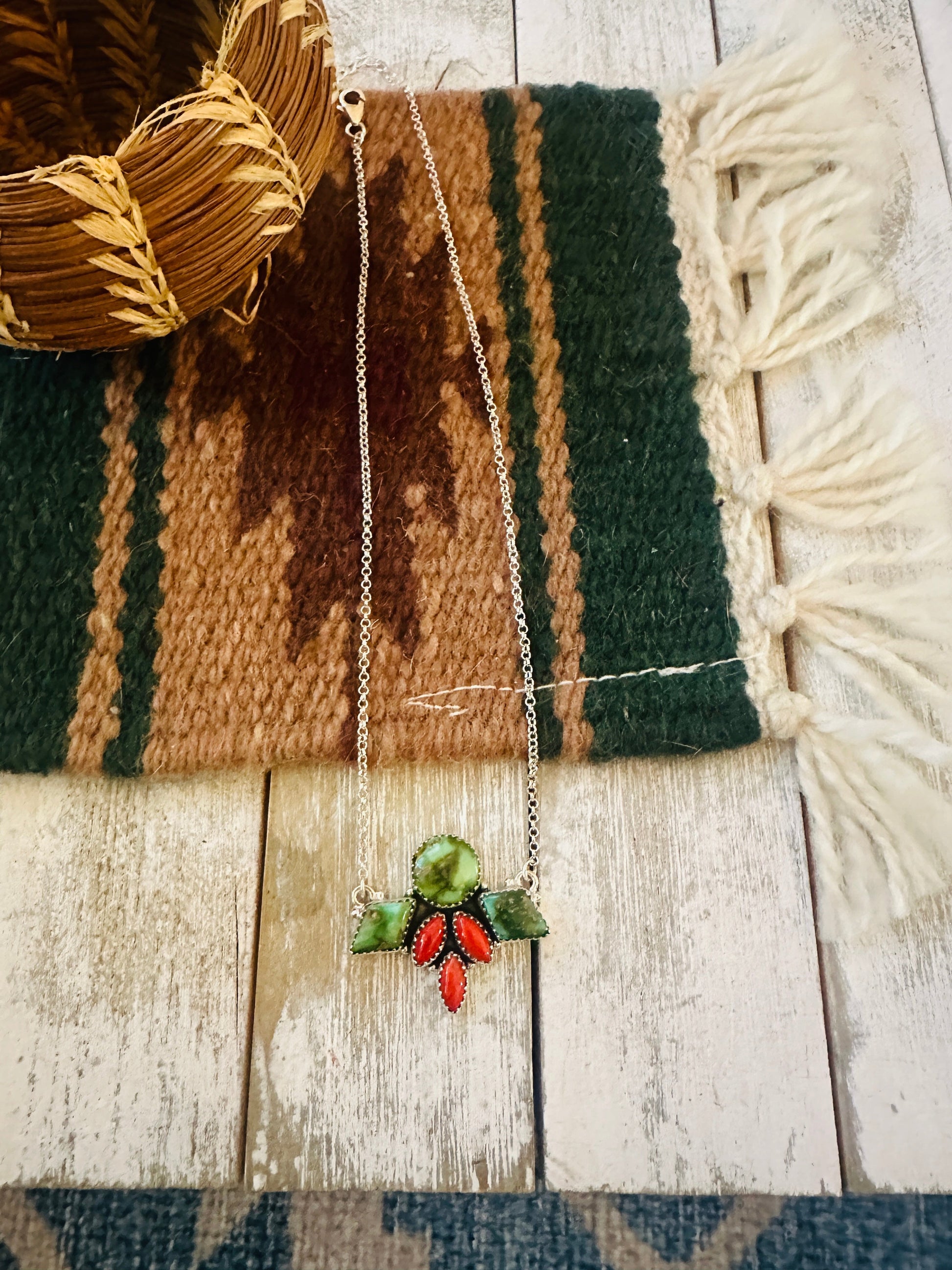 ** Christmas Collection ** Handmade Sterling Silver, Turquoise & Coral Necklace Signed Nizhoni