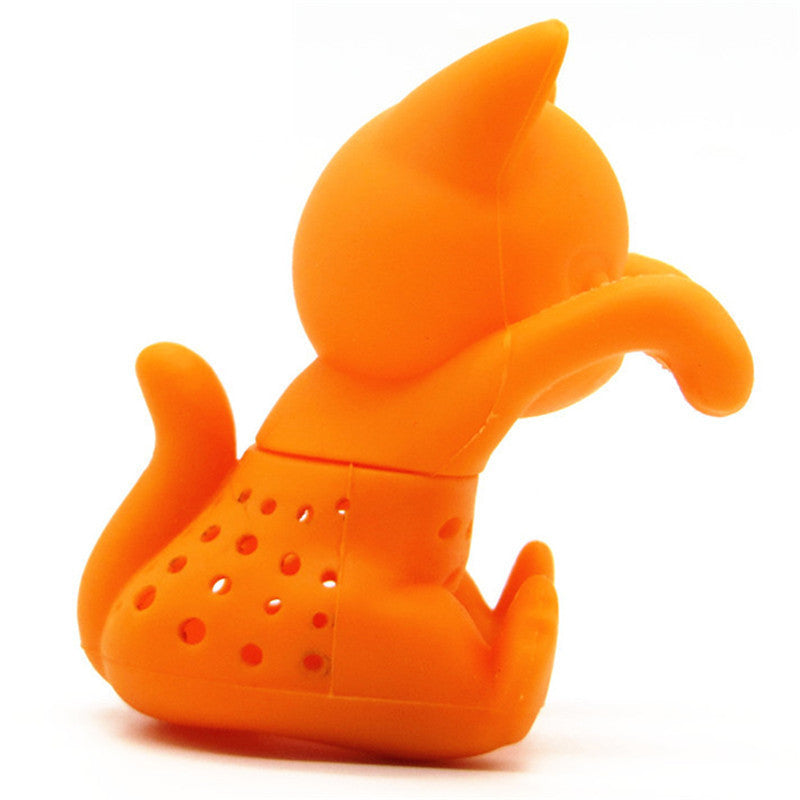 Cute Cartoon Cat Shaped Blacktea Tea Infuser Tea Strainer Food Grade Silicone Loose Leaf Herbal Spice Brewing Tools Orange