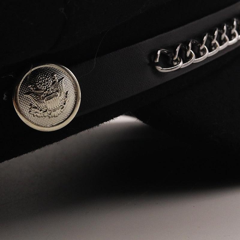 Elegant Winter Chain Black Military Berets For Women Female Flat Army Cap Women's Octagonal Beret Cap Luxury Beret Hat Girl Travel Berets Ladies Comfortable Autumn Cap