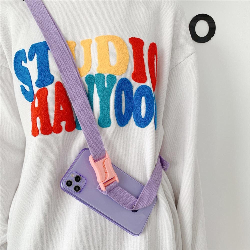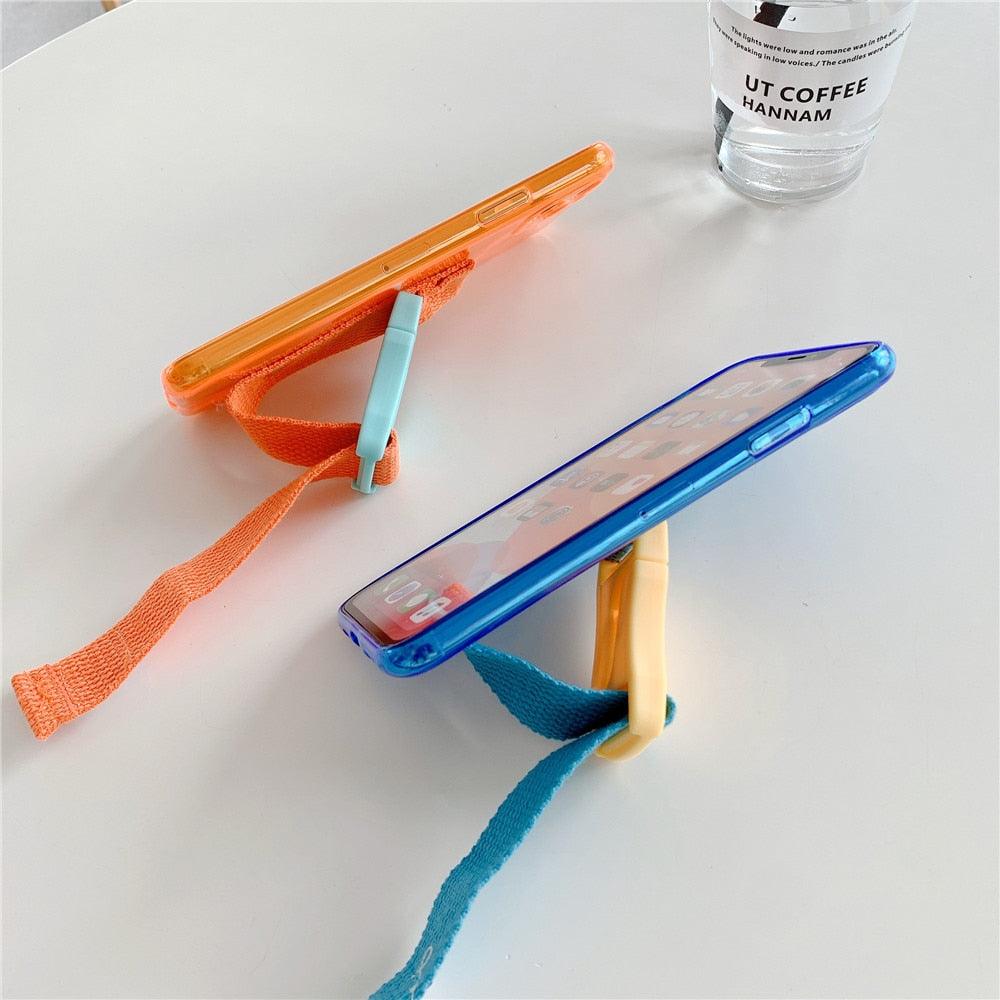 Fluorescent Sports Smartphone Case Bright Color Silicone Simple Soft Protective Cover Mobile Strap Wrist Crossbody Phone Case For iPhone 13 12 11 Pro XR XS Max X 8 7 Plus SE2 Strap Soft Silicon Phone Cover