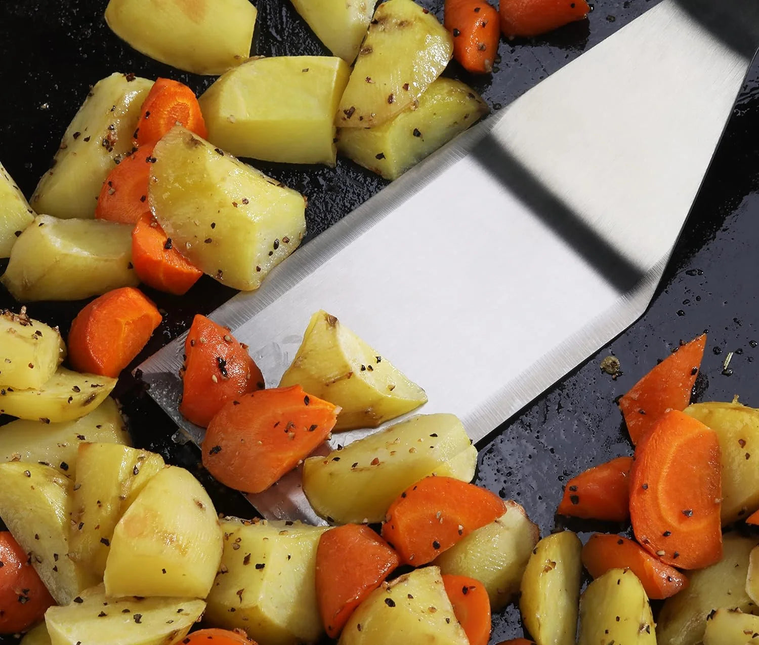 Fish Spatula: 6 inches long by 3 inches wide — expertly designed to gently lift and flip delicate fish fillets and other fragile foods.