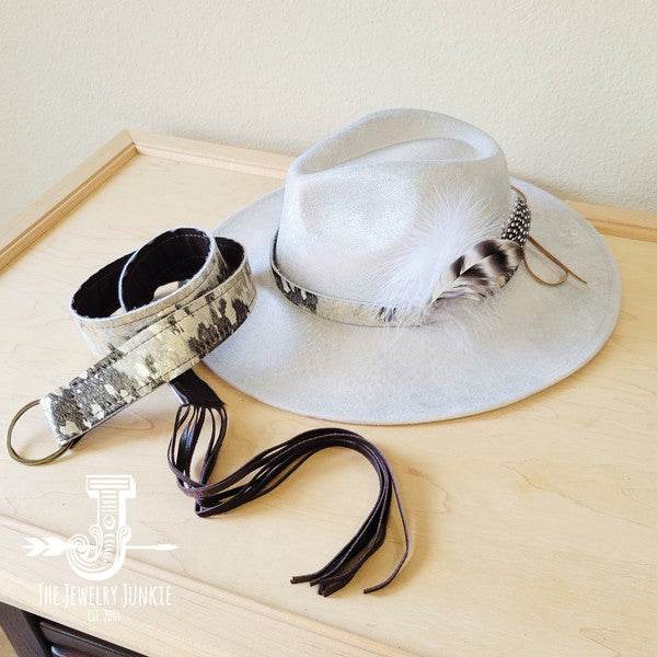 Hair-on-Hide Silver Metallic LeatherBelt w/ Fringe
