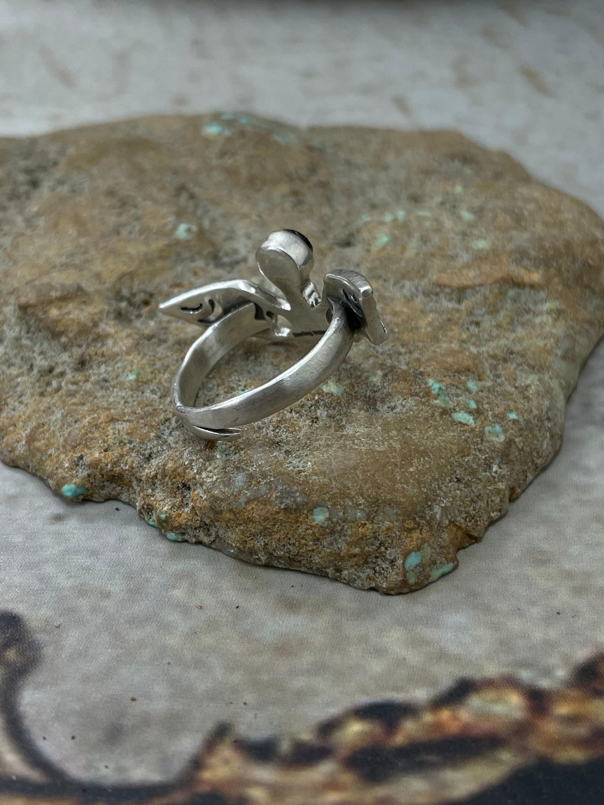 "Halloween Collection" Handmade Sterling Silver Black Onyx Bat Ring with Signed Nizhoni