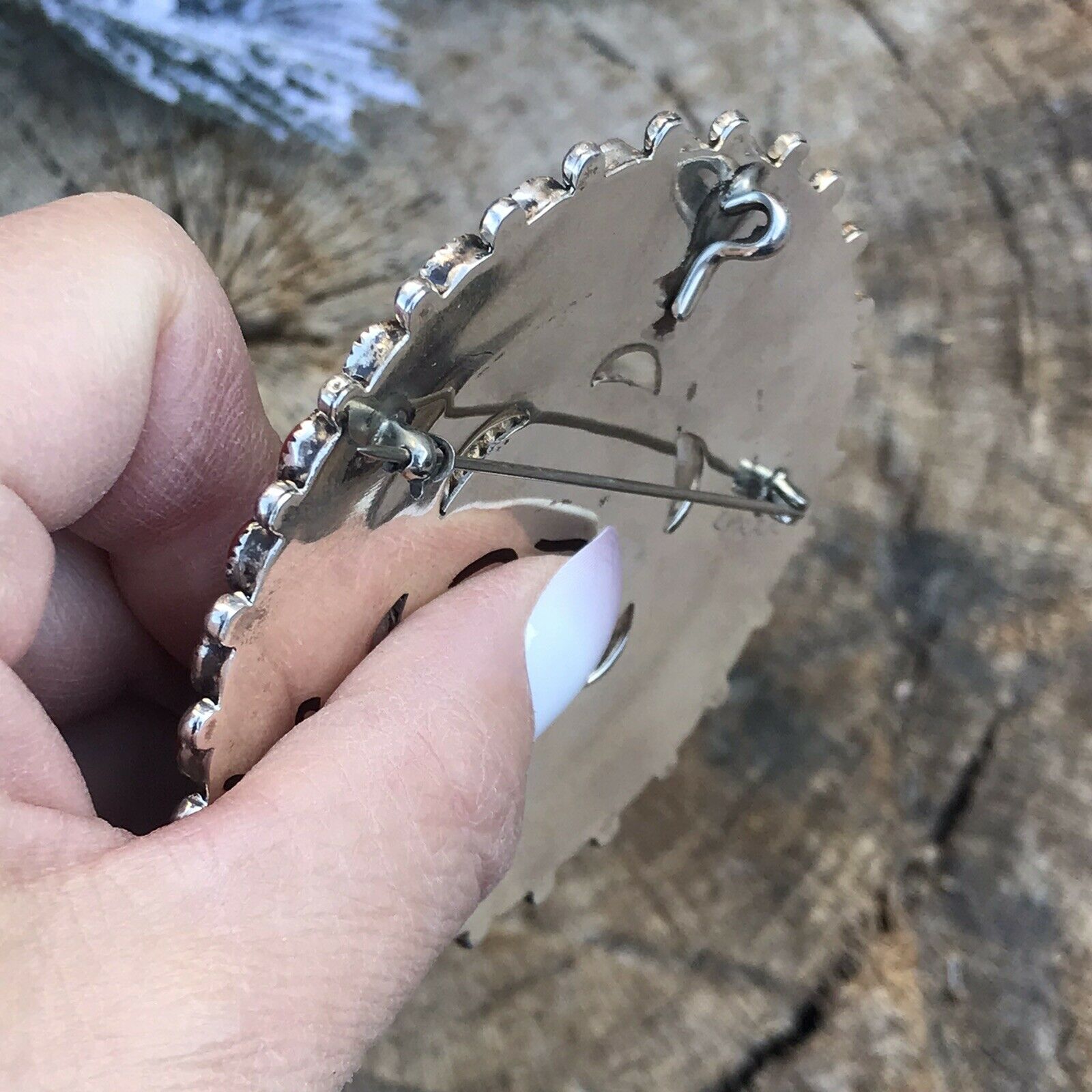 Handcrafted Jumbo Sterling Silver & Natural Red Coral Cluster Pendant/Pin. Measuring 3 inches in diameter. Gorgeous piece signed by Artist and stamped Sterling. Perfect for your favorite chain or beads. Or use as a great pin on your hat or jacket. So many options.