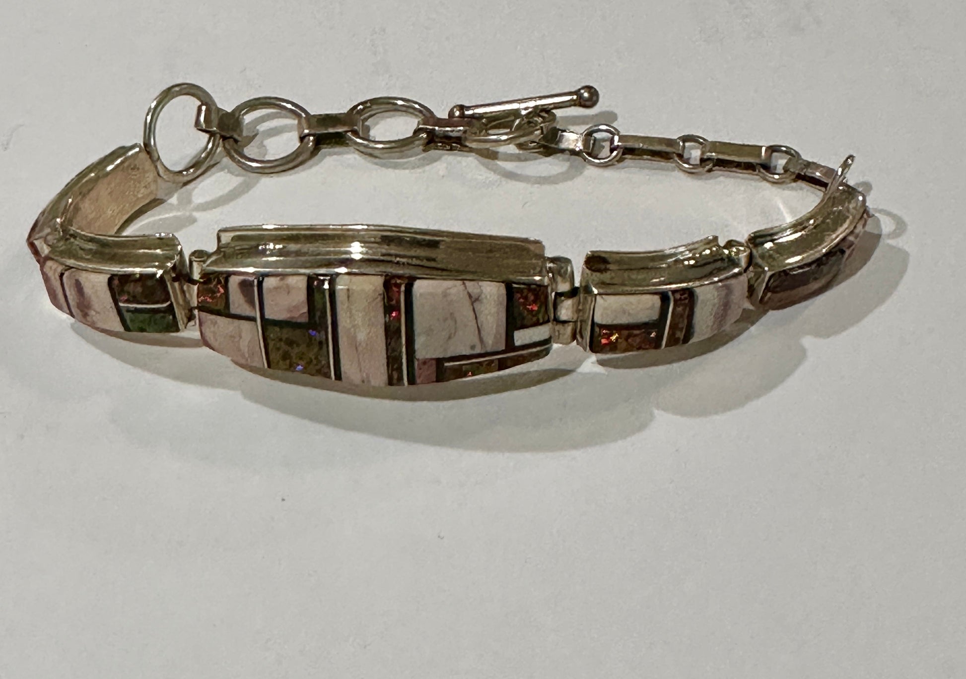 Handcrafted Onyx, Purple Spiny, Coral & Sterling Silver Inlay Bracelet