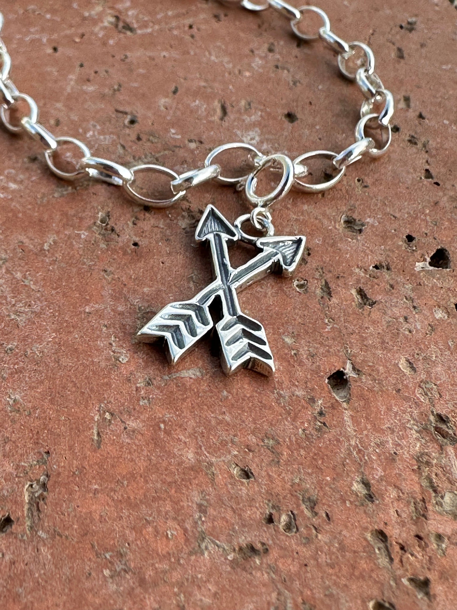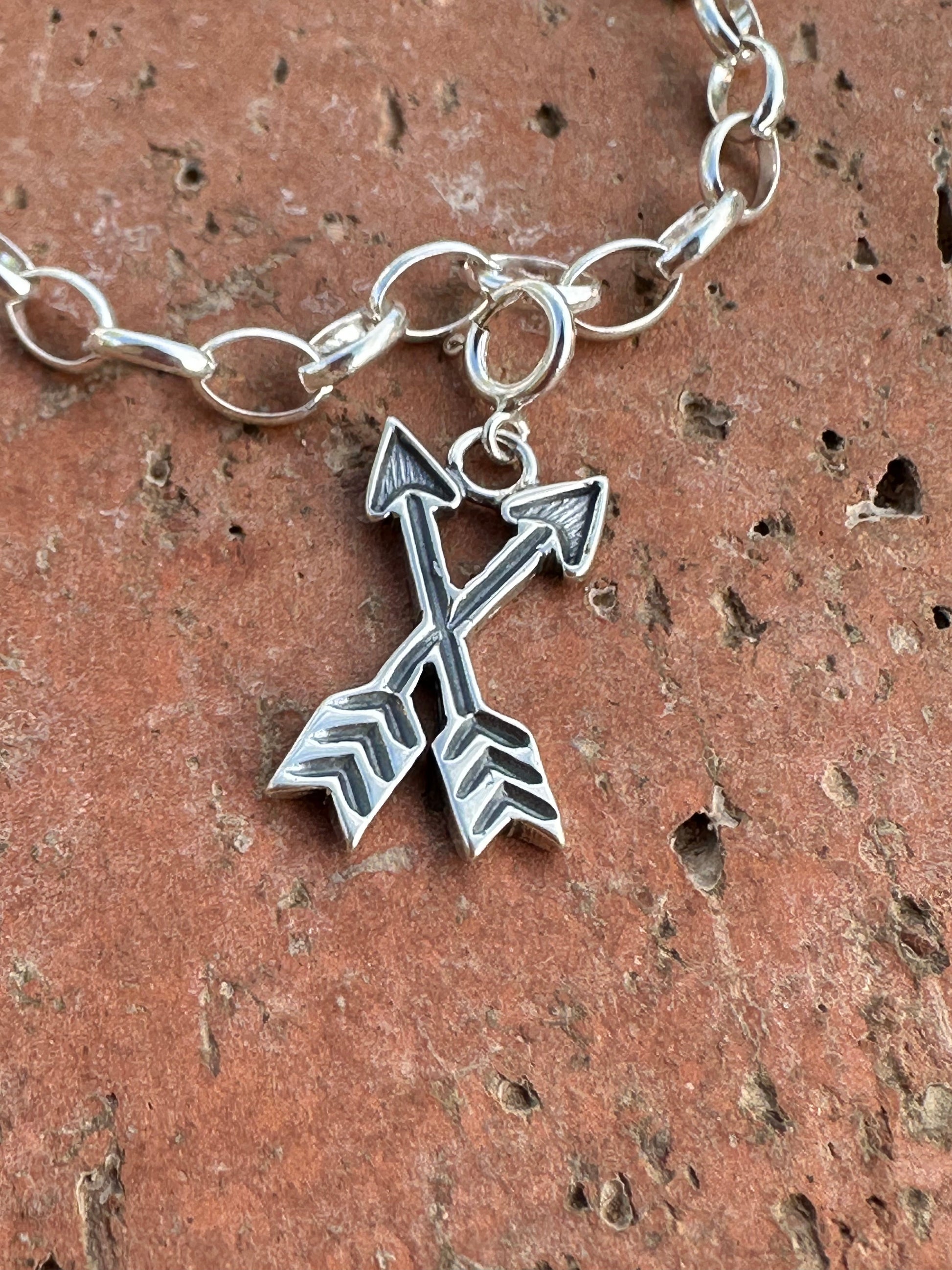 Sterling Silver Double Arrow Navajo Handmade 1 inch by 1/2 of an inch Arrow Charm.