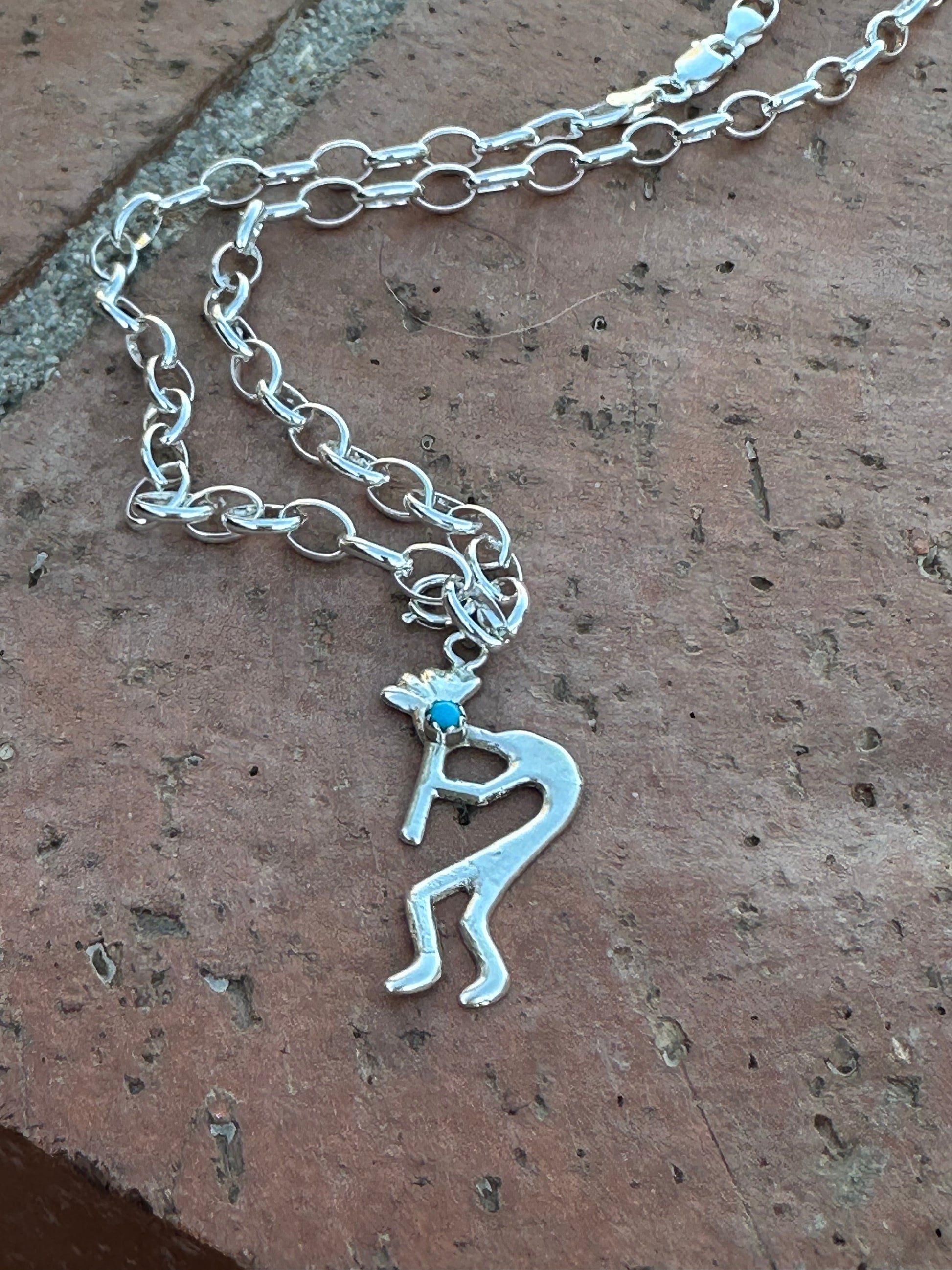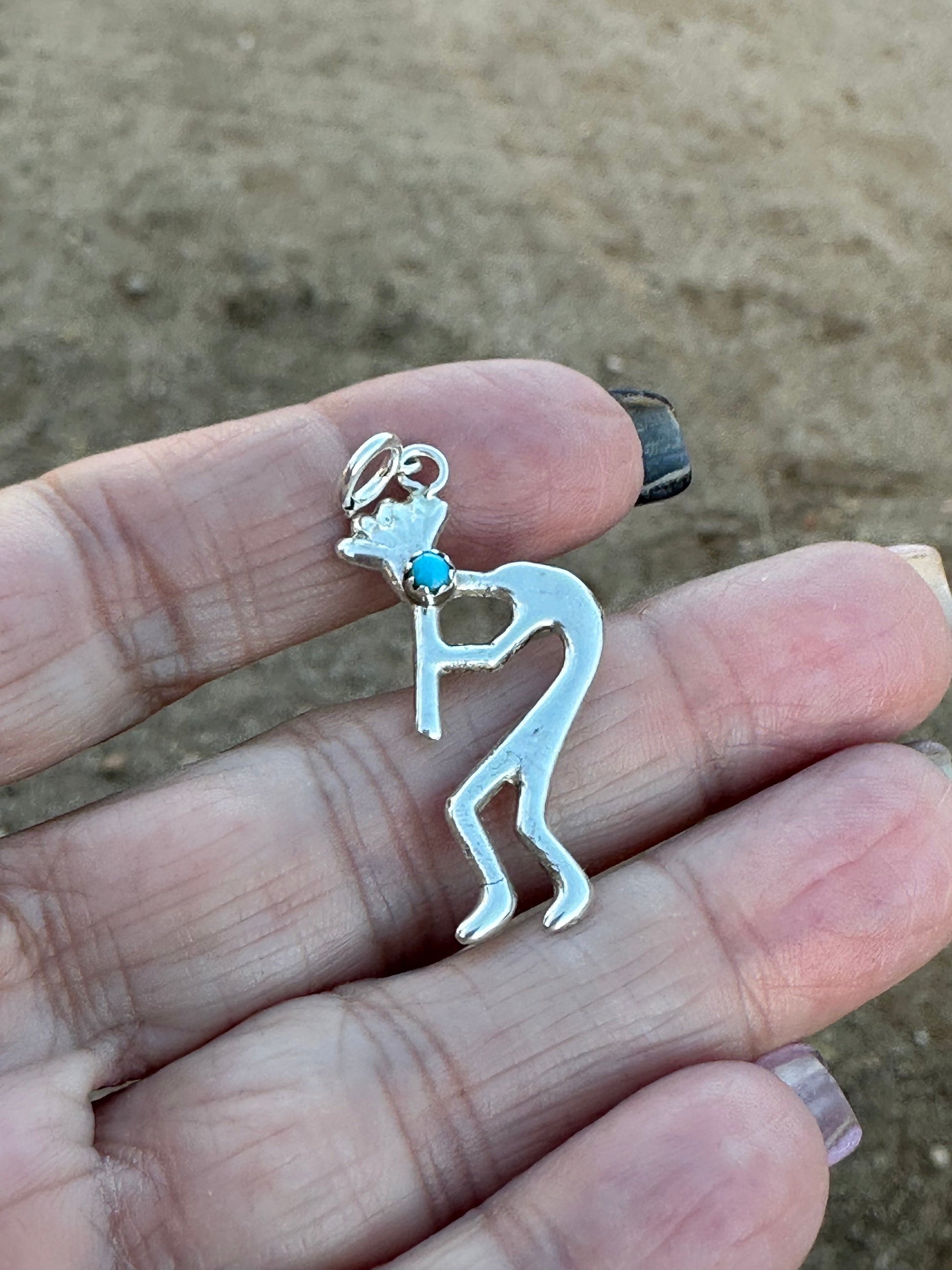 Crafted Sterling Silver & Turquoise Handmade 1 1/4 inch by 1/2 of an inch Kokopelli Charm.