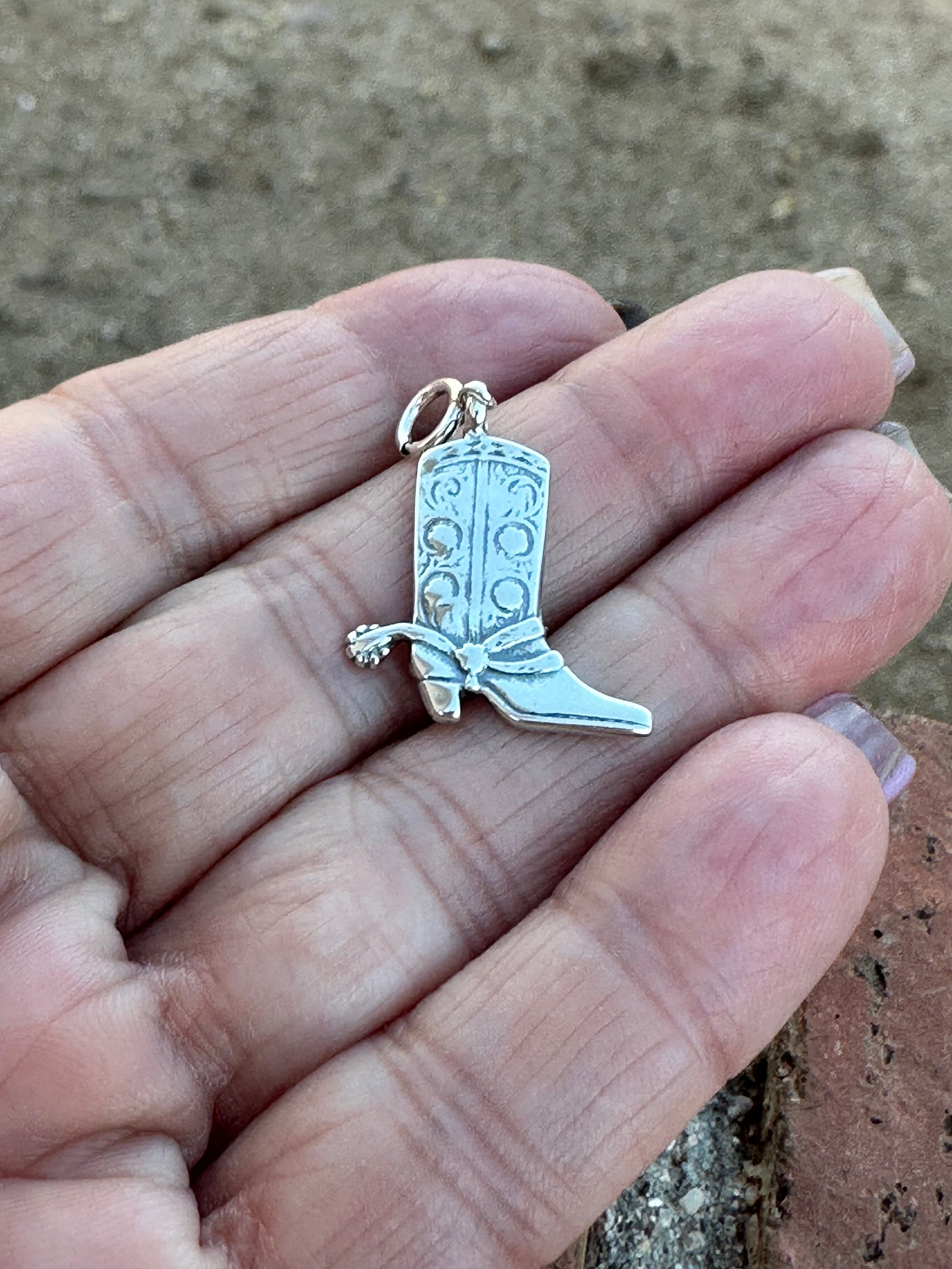 Navajo Crafted Sterling Silver Handmade 3/4 inch by 3/4 of an inch Cowboy Boot Charm.