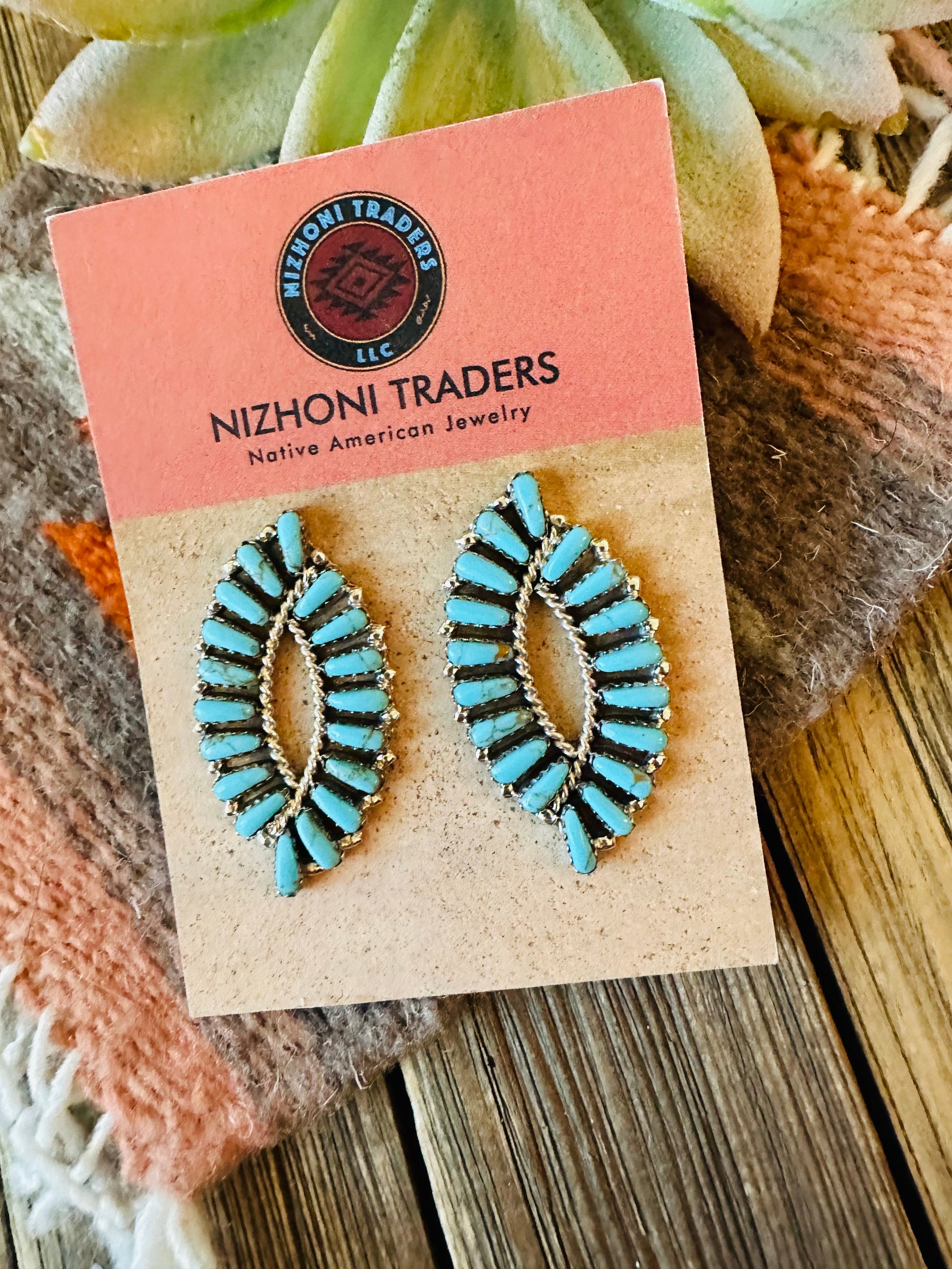 Handcrafted Sterling Silver and Turquoise cluster post earrings. Such a great pair for any collection! These beauties measure 1 3/4 inches long and 7/8 of an inch wide. Stamped Sterling and signed by the artist.