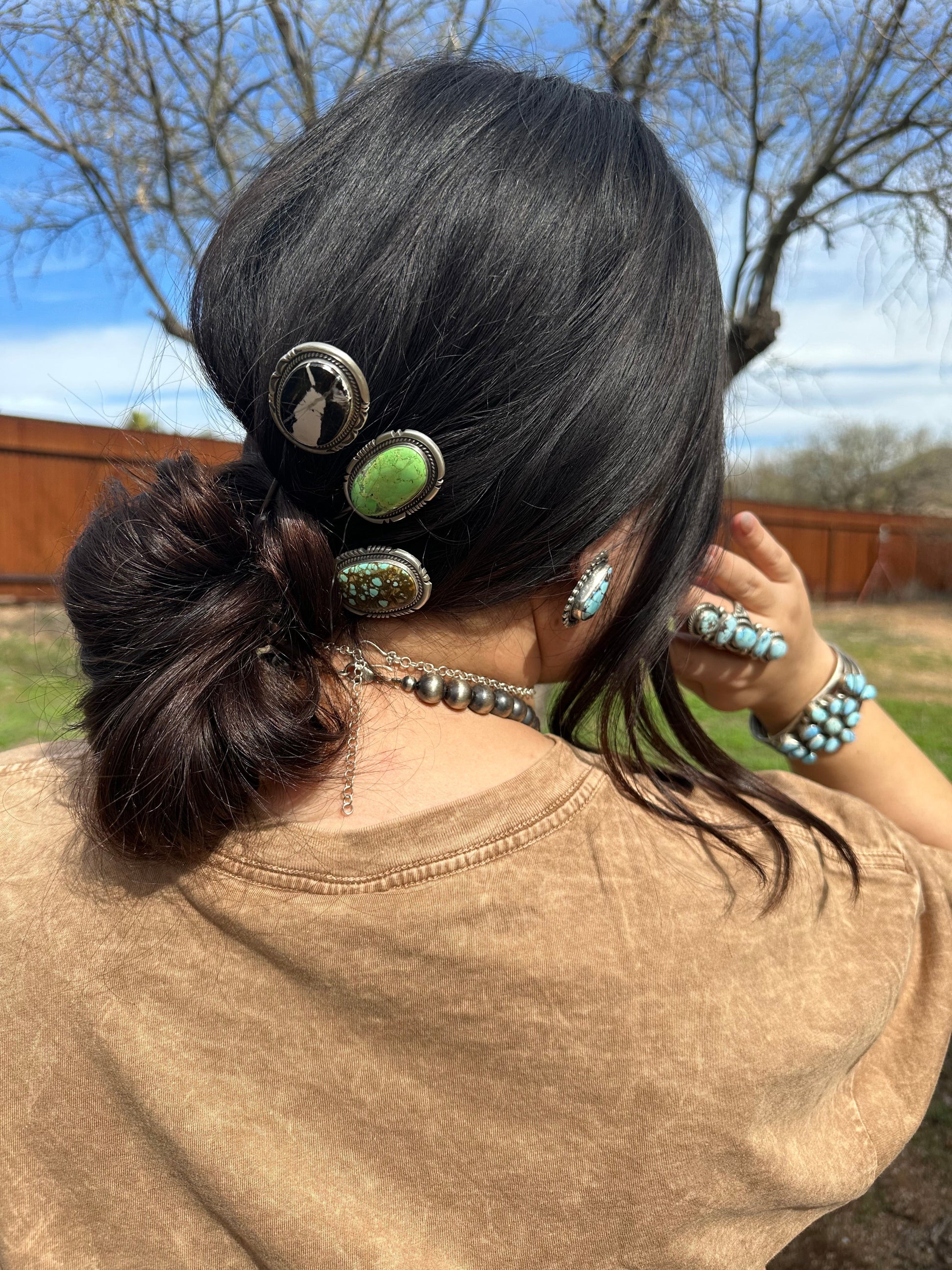 Beautiful Sterling Silver & White Buffalo Hair Pin. Measures 7 inches long and 1 1/4 inches wide. Such a gorgeous stone!