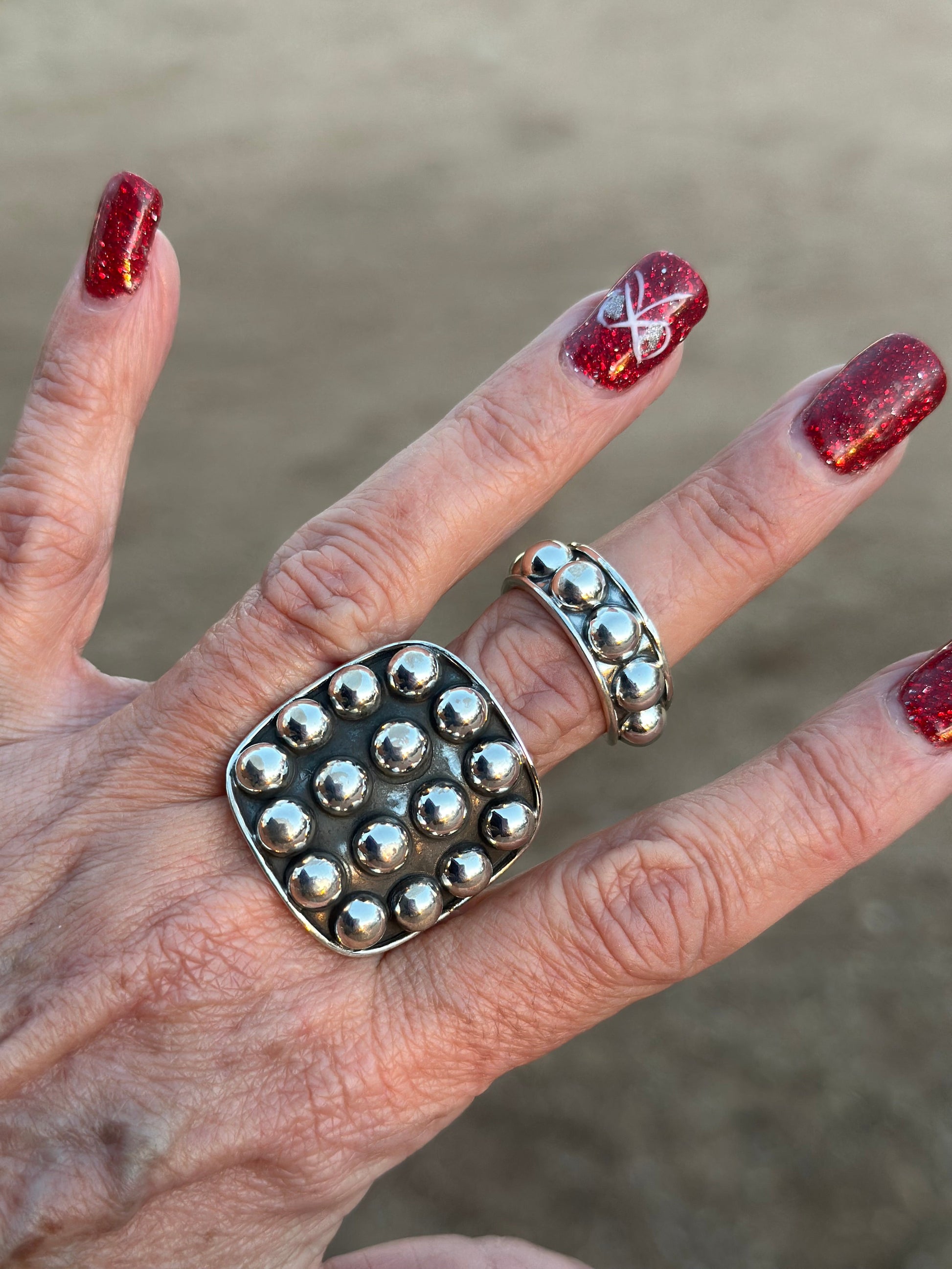 Piece is right over 1 inch wide with 6mm beading, stamped Sterling and Signed. Listing is for ONE ring, others shown for variety available.