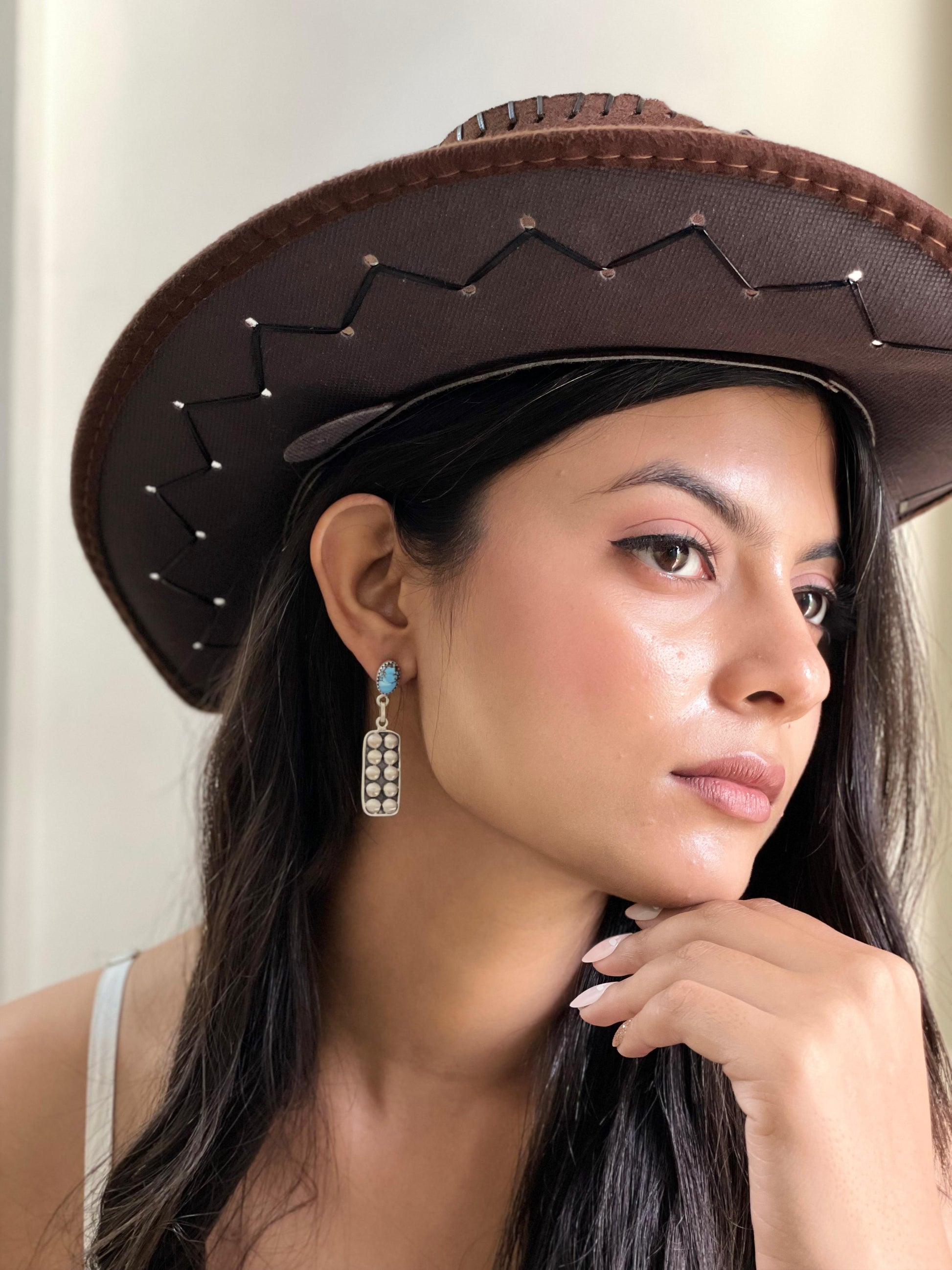 Handmade Sterling Silver Golden Hills Turquoise Post Dangle Earrings with Signed Nizhoni