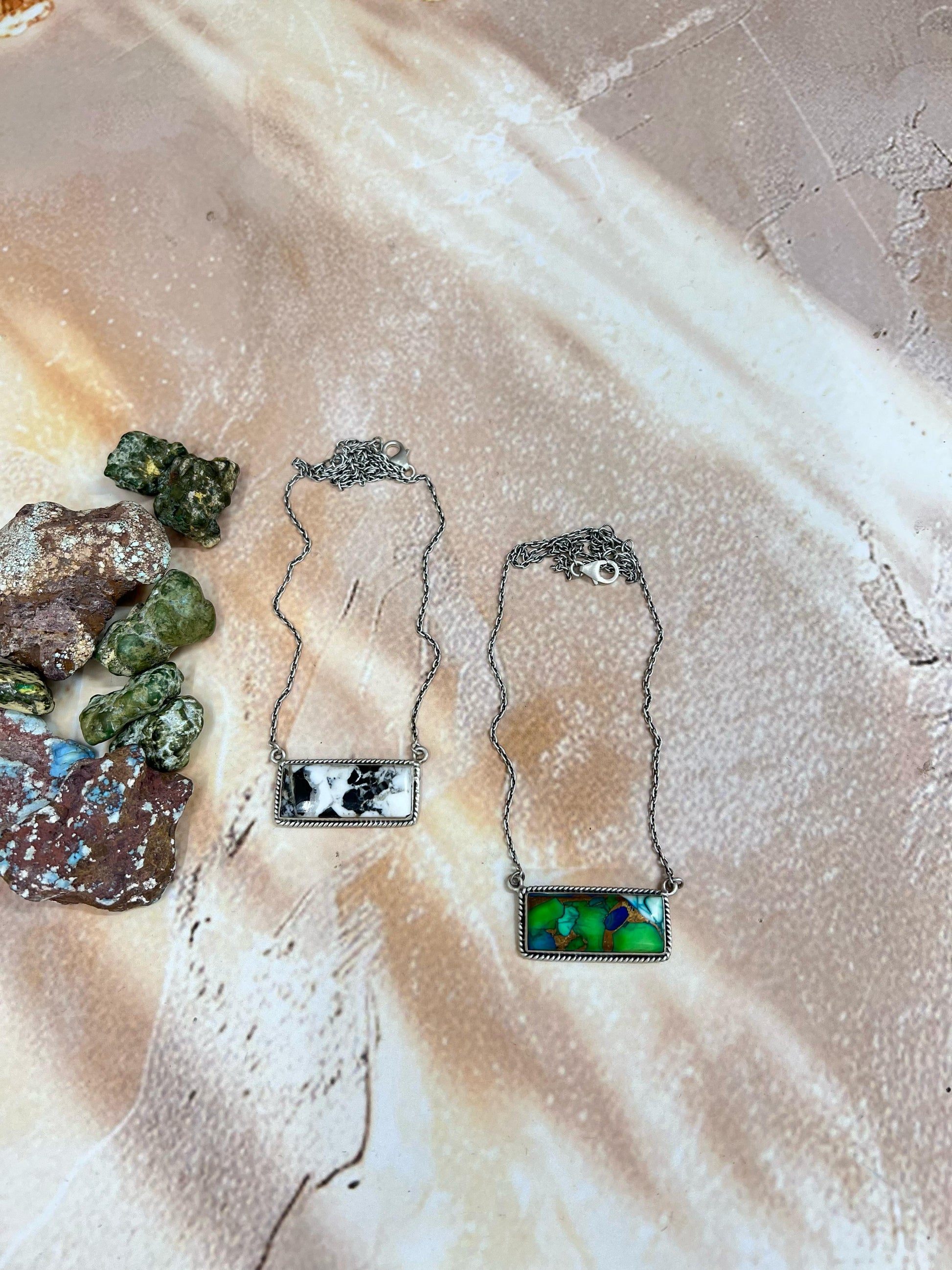 Handmade Sterling Silver White Buffalo, Peacock Dahlia Necklace with Signed Nizhoni