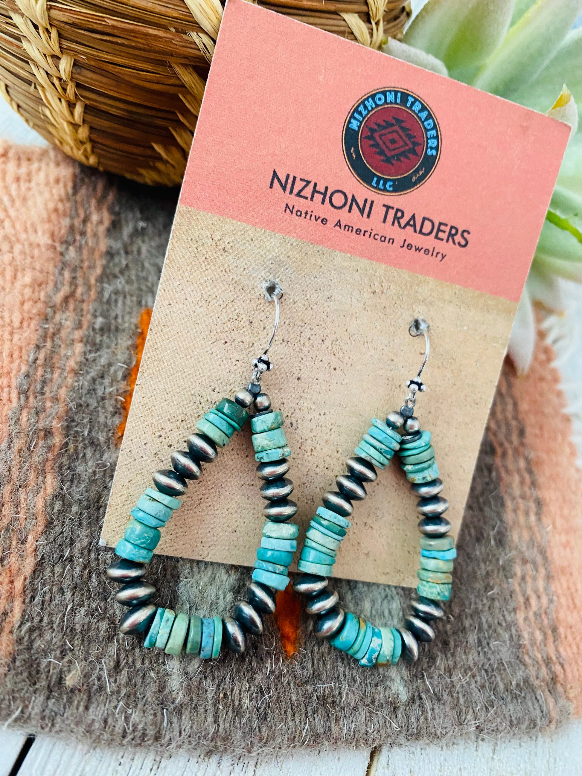 Handmade Turquoise And Sterling Silver Beaded Dangle Earrings