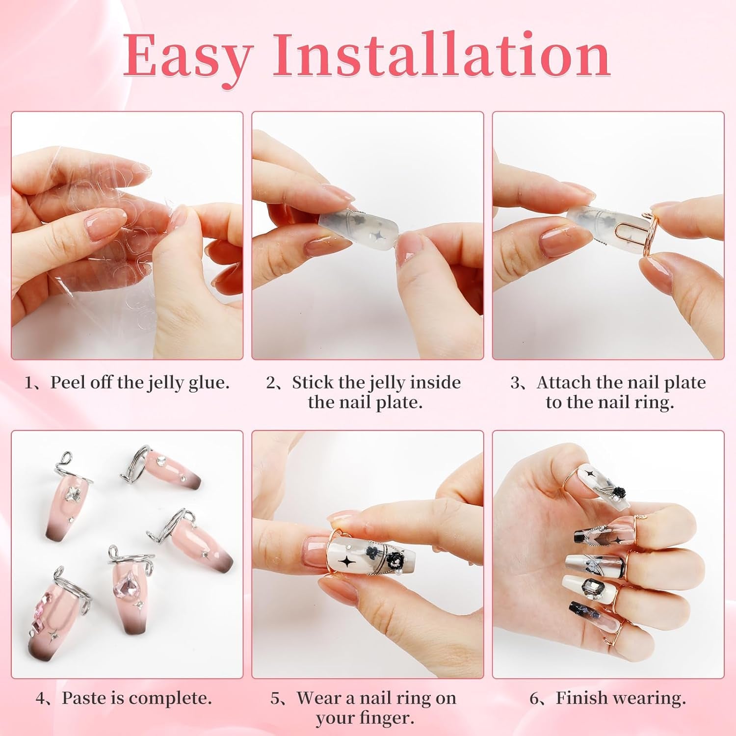 Designed for those who need to easily switch nail styles due to work policies, religious practices, or hands-on activities, our nail rings offer a convenient “on-and-off” wear experience. The rings can be removed quickly like traditional rings, while your press-on nails stay securely in place, making it effortless to change your look whenever you want.