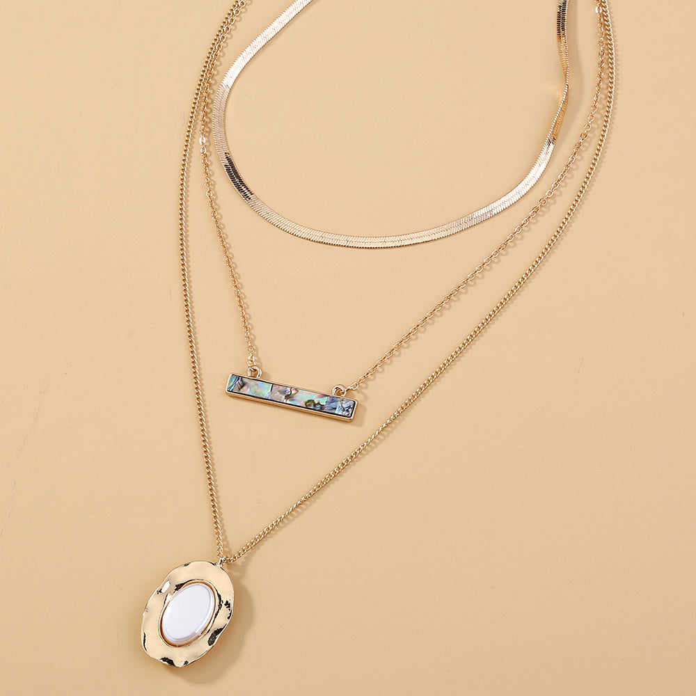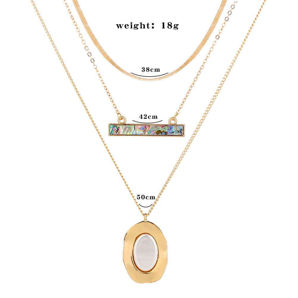 Hot-selling necklaces in Europe and America, oval pure white flat pearls, colored abalone shells, multi-layer flat snake chains and clavicle chains