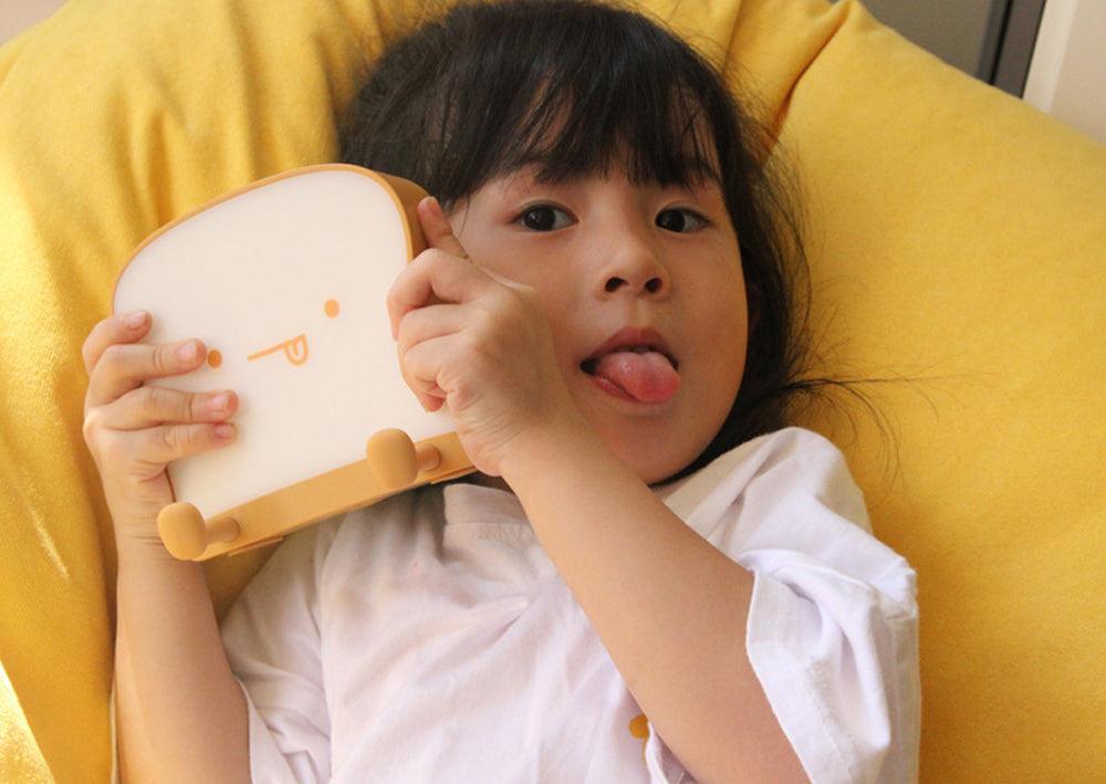 LED Toast Night Light with Silicone Foot Phone Holder Table Lamp Infinite Dimming Bread Decoration Creative Lamp Decorative Table Lamp Cute Study Lamps for Bedroom Décor