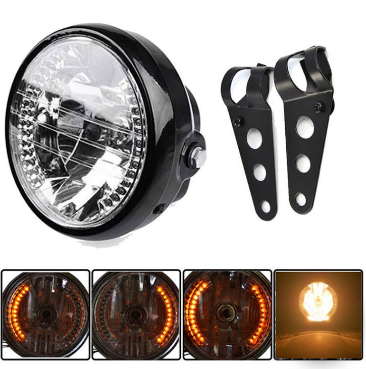 Motorcycle Headlight Turn Signal Indicator Blinker Light With Bracket Headlamp For Cafe Racer
