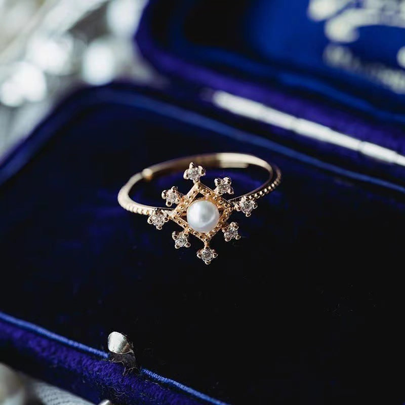 Natural Petals Shell Pearls Copper-plated Gold Simple Ring