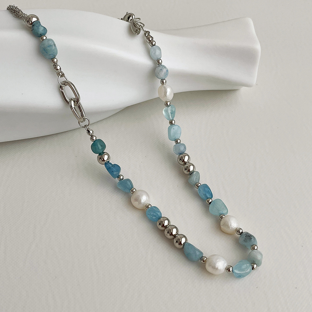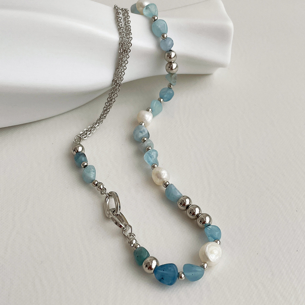 Natural Stone Blue Crystal Necklace Baroque Natural Freshwater Pearls