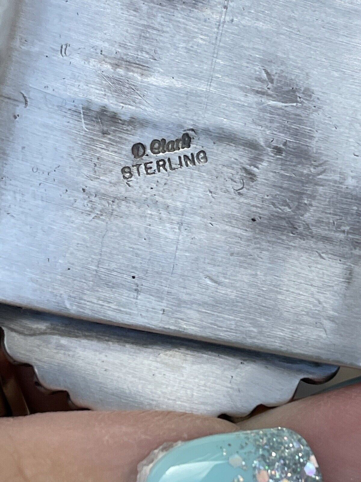 Look at this amazing Number 8 Turquoise and Sterling Silver Statement cuff. Measuring 2 1/4 inches wide. With an inner circumference of 5 3/4 inches and 1 inch gap . Weight 124 grams. Signed by Artist Danny Clark and stamped Sterling . This is a Beautiful Solid Cuff.