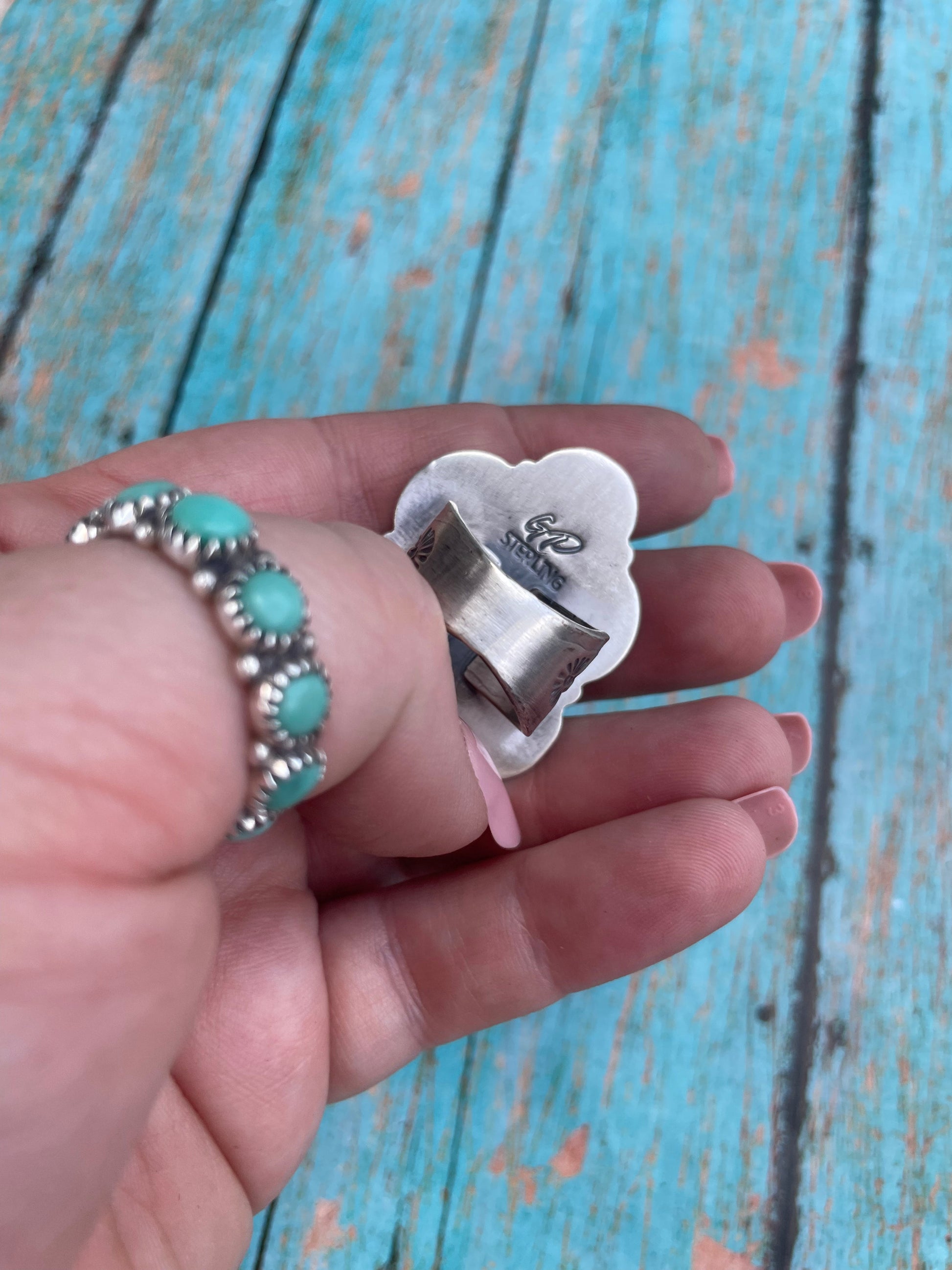 Navajo Sonoran Mountain Turquoise And Sterling Silver Statement Ring Size 7