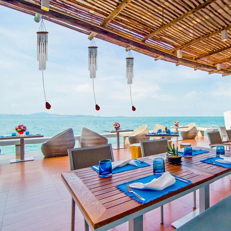 - LARGE WIND CHIMES DEEPLY TONED: The beauty of the wind chimes joins the Deep Tenor and Bass sounds of our Largest chimes.Total hanging overall length is 36”with a stronger metal hook..5 metal tubes are hand-tuned by our professional tuning experts to achieve a superior musical performance.Thick tubing wall creates a longer lasting deep tone.The sound is soft,deep tone and relaxing.