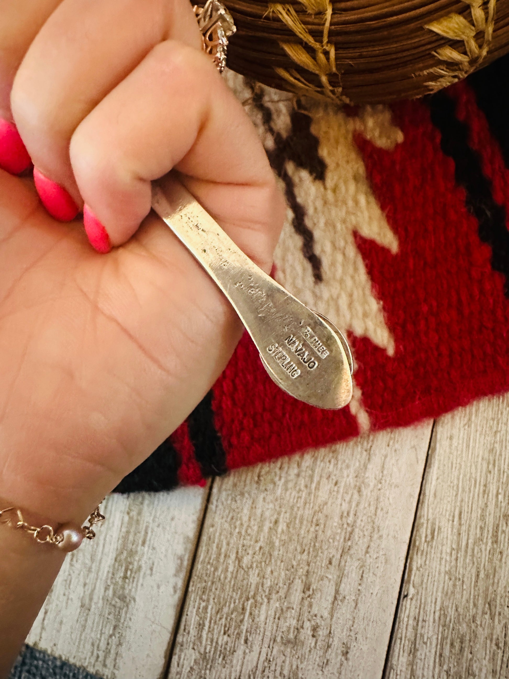 Vintage Old PawnTurquoise And Sterling Silver Hair Pin. This is such a beautiful hair accessory! Measures 1 1/2 inches long by 5 1/2 inches wide. Signed by the artist and stamped Sterling. Great vintage condition.