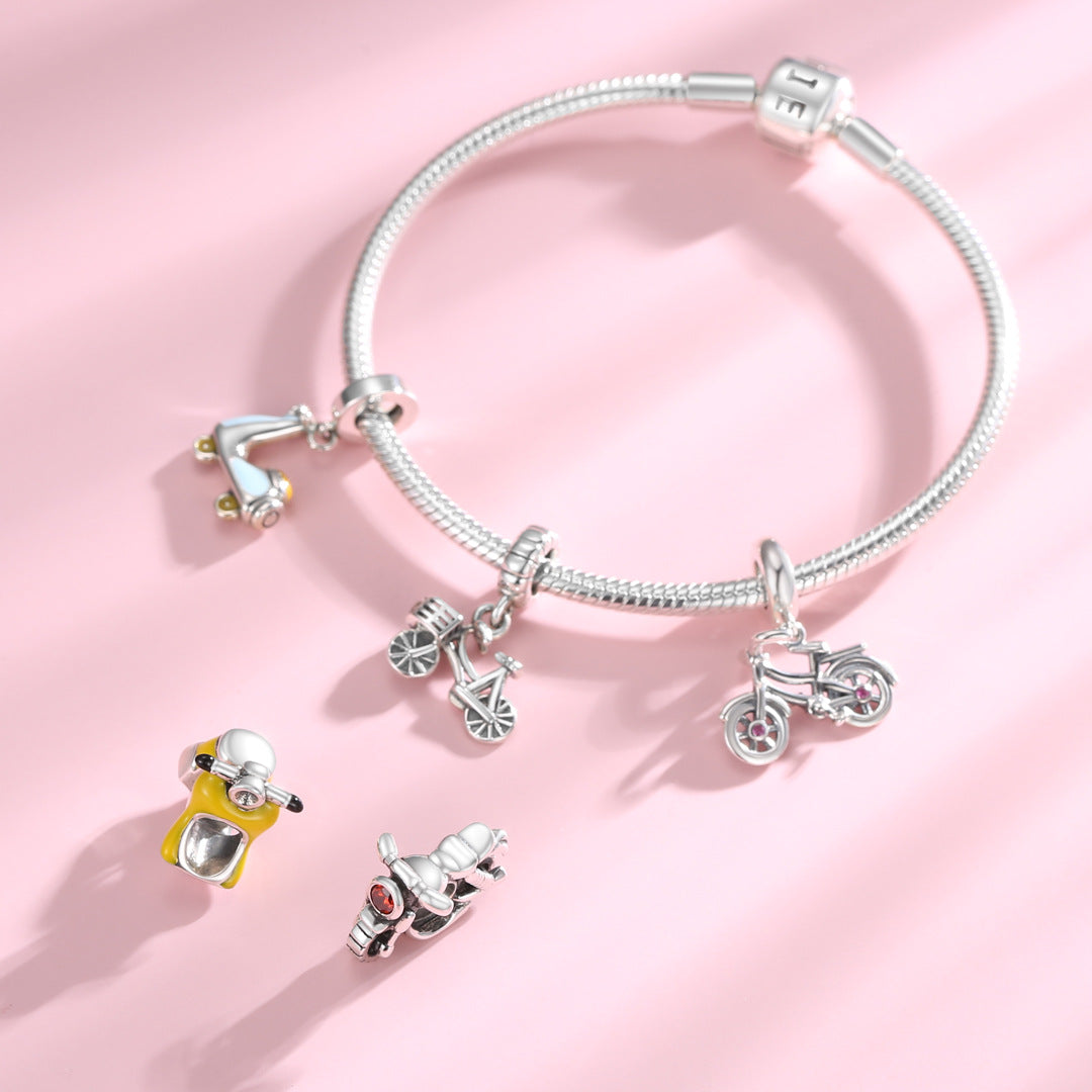 S925 Sterling Silver Beads Creative Bike Small Electric Donkey Series Beaded Pendant DIY Bracelet Accessories Silver Jewelry Beads