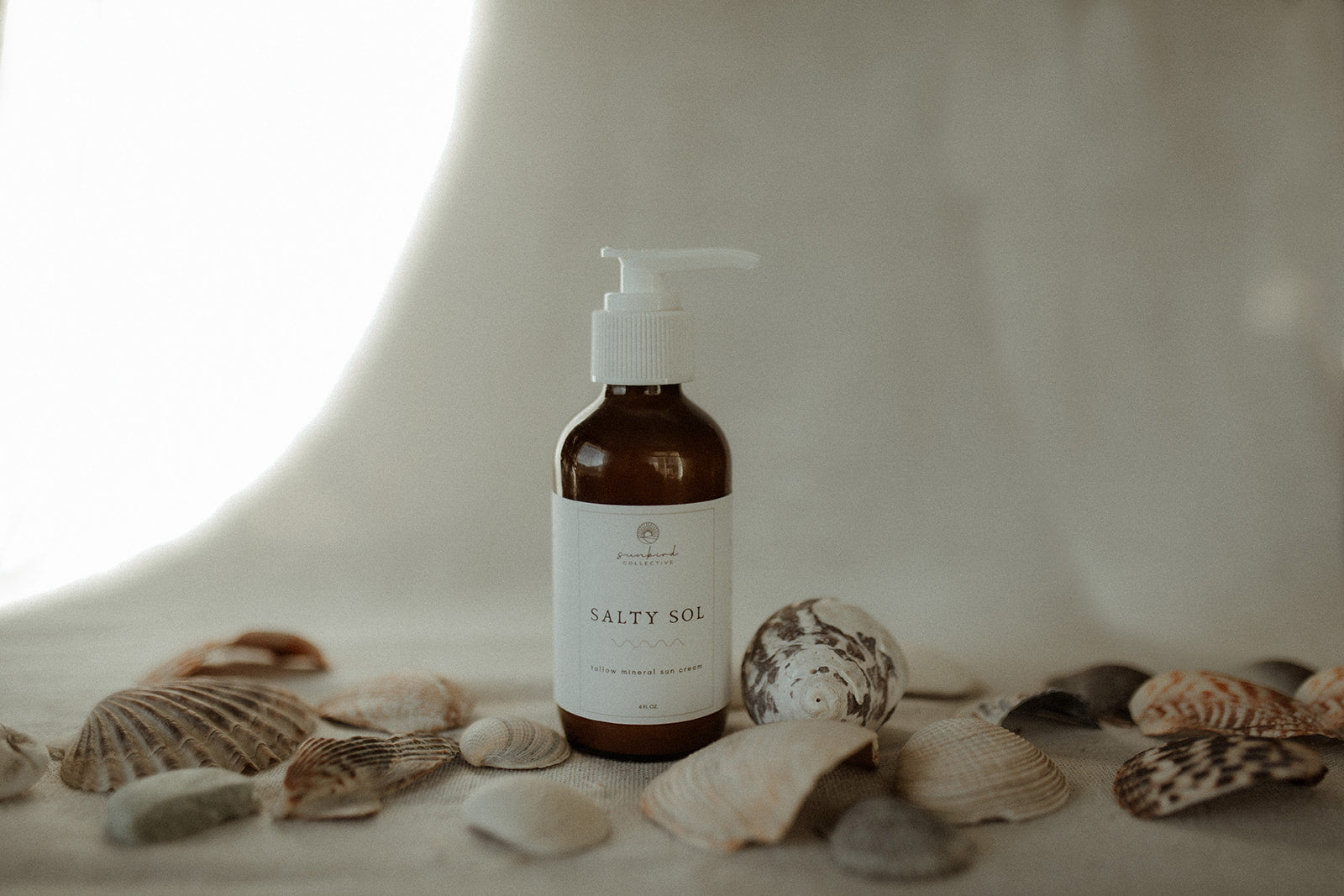 Salty Sol is a mineral-rich balm crafted with regenerative grass-finished tallow, golden jojoba oil, and non-nano zinc oxide for gentle, physical sun protection. Powdered calendula and rose lend their soothing, skin-loving properties — supporting calm, hydrated skin under the sun’s golden touch.