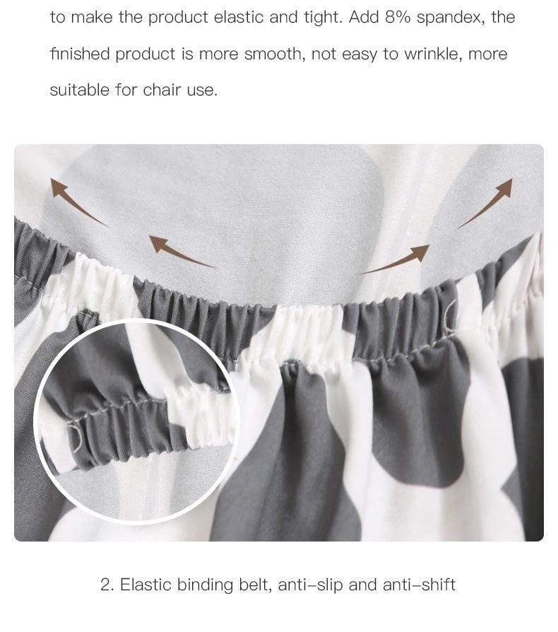 - UNIVERSAL STRETCHY FABRIC: Made of high quality polyester spandex material,two-way high stretchy.Soft, comfortable and wrinkle resistant, non-slip.The smooth fabric will not makes little crevices for crumbs and dirt to get stuck in!Secure fit with sewn-in high elastic hem,perfect fit your chair surface with no gaping/twisting.