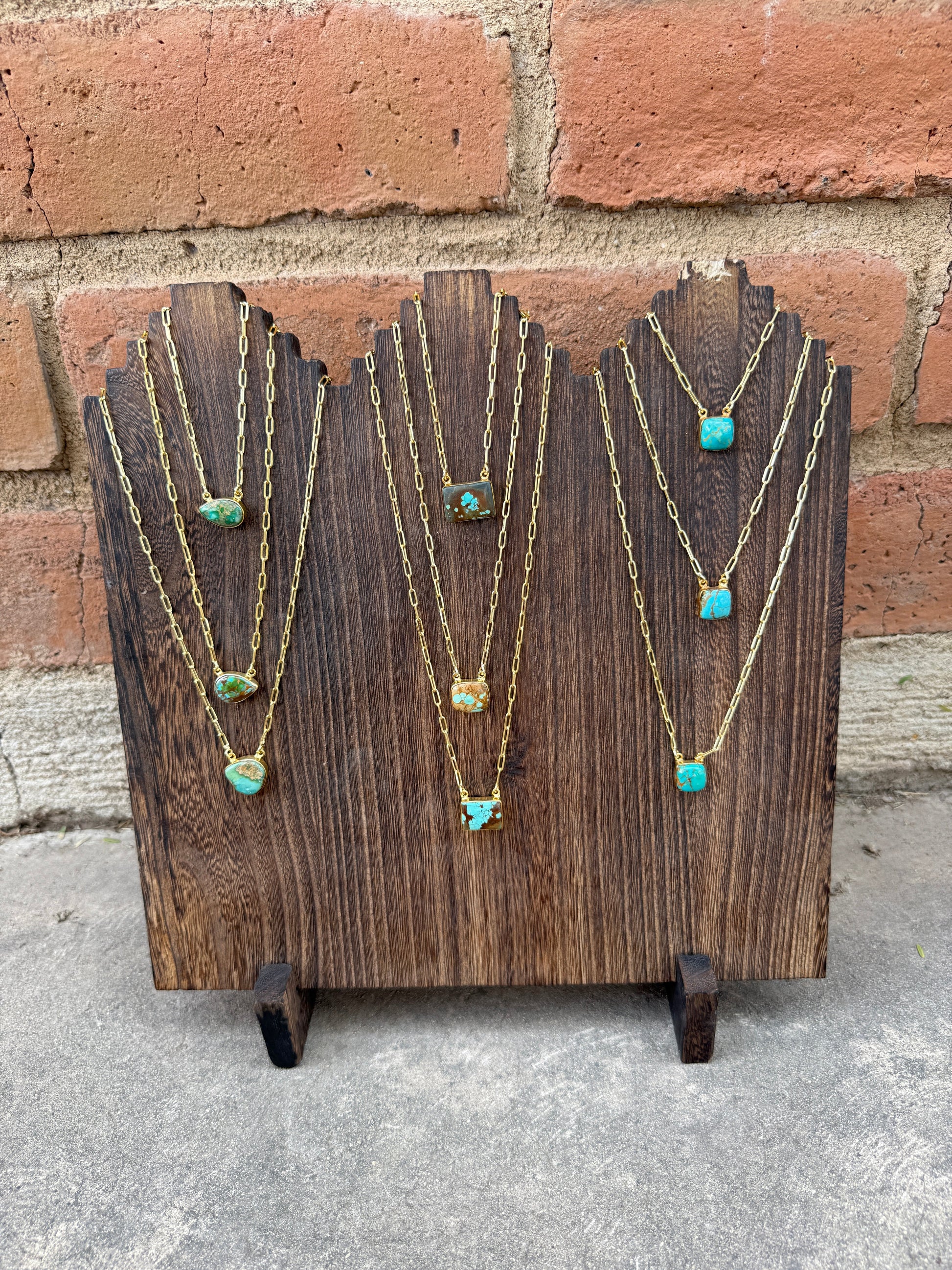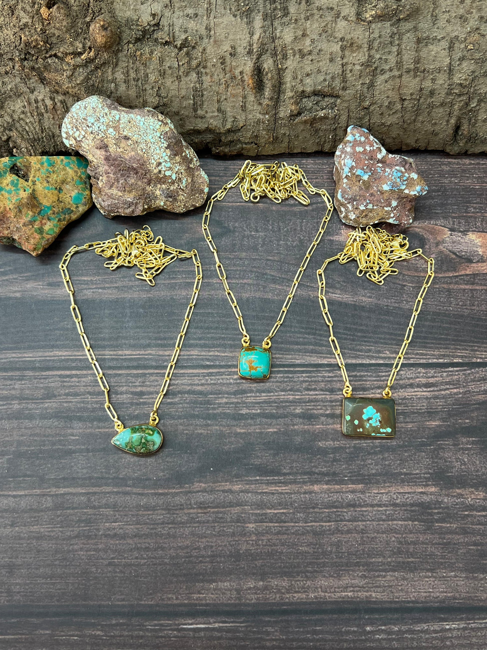 How gorgeous are these Handmade Natural Kingman Turquoise, Sonoran Mountain Turquoise, Number 8 Gold Plated Necklace. These are high quality necklaces with beautiful natural stone. These have a beautiful paper clip chain measuring LENGTH 17+2" and WIDTH 6/8".