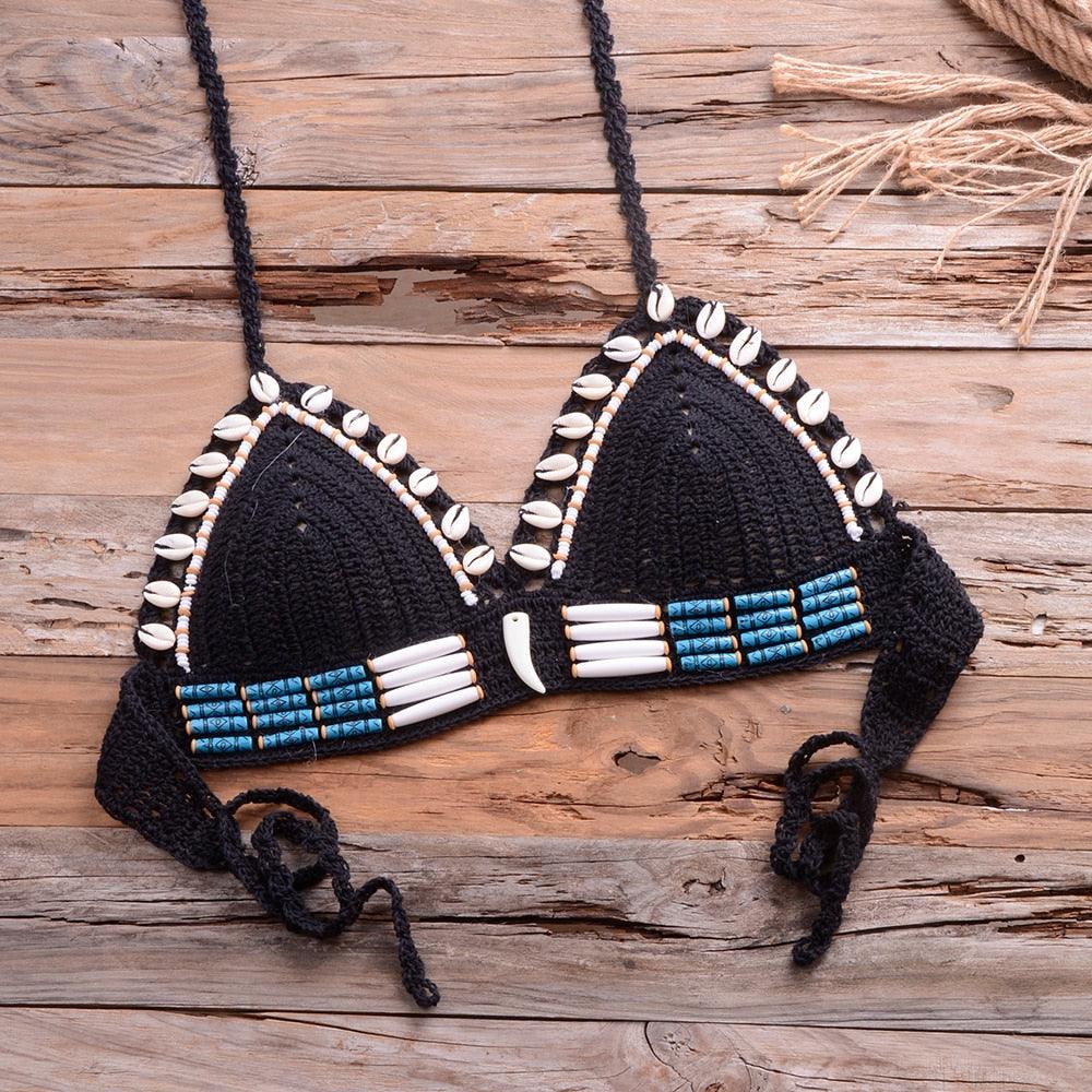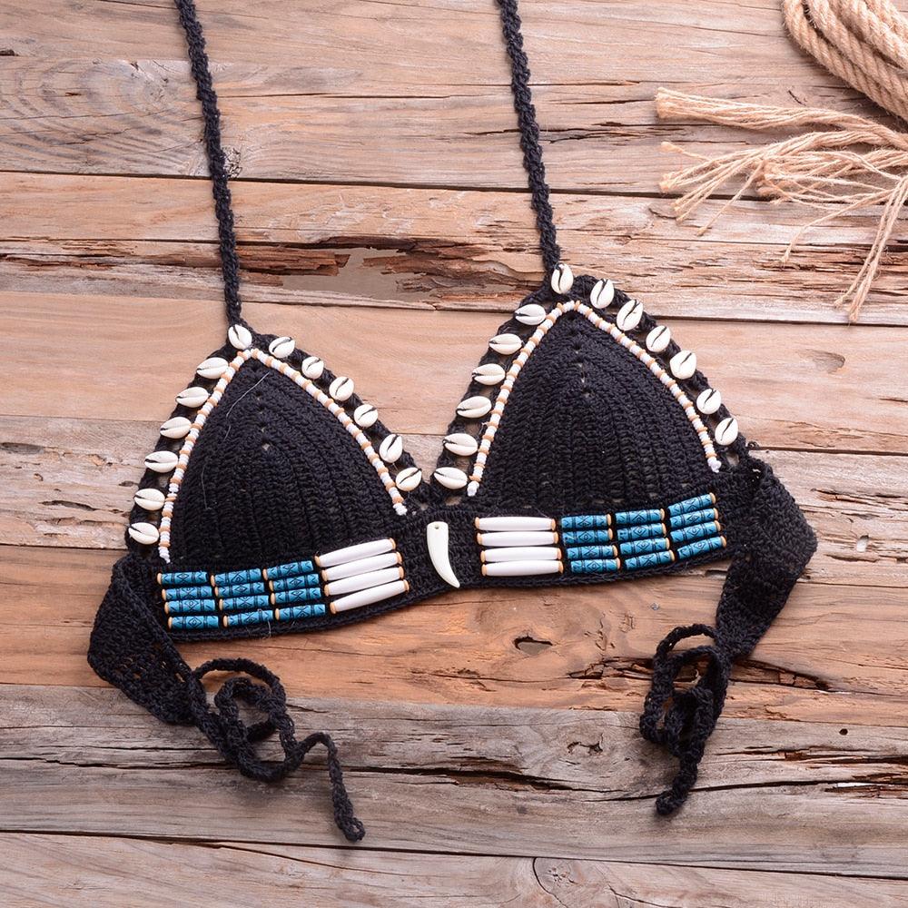 Vintage Blue Bikinis 2 Piece Halter Bikini Set Women High Waist Sequin Swimsuit Set Handmade Crochet High Quality Swimsuit Women Push Up Swimwear Knitted Beach Wear Bathing Suit