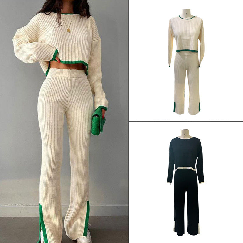 Winter Idle Style Contrast Color Suit Female Autumn And Winter Knitting