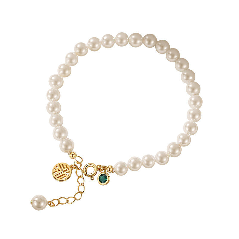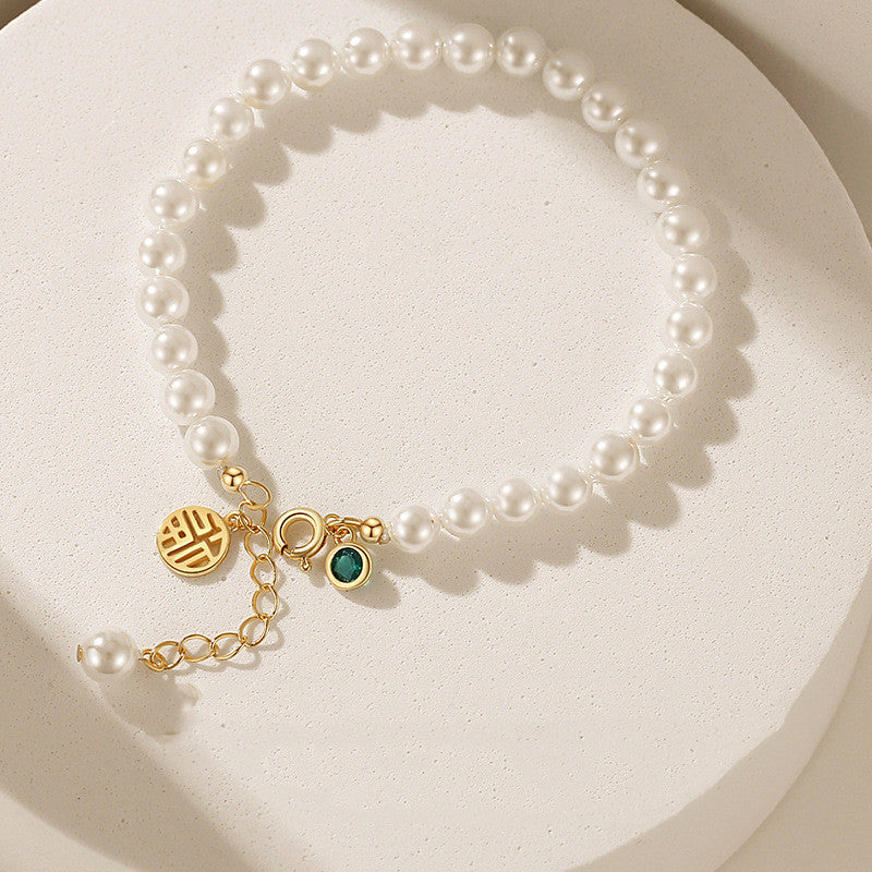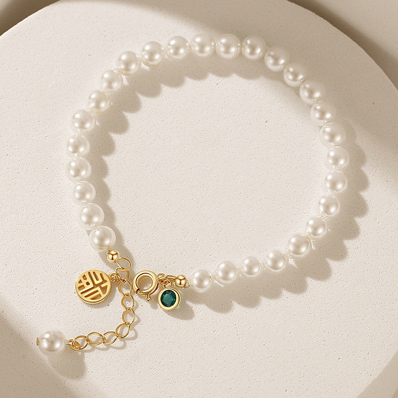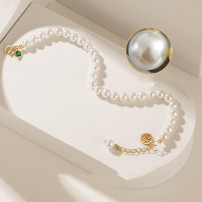 Women's Fashionable All-match Sterling Silver Shell Pearls Bracelet