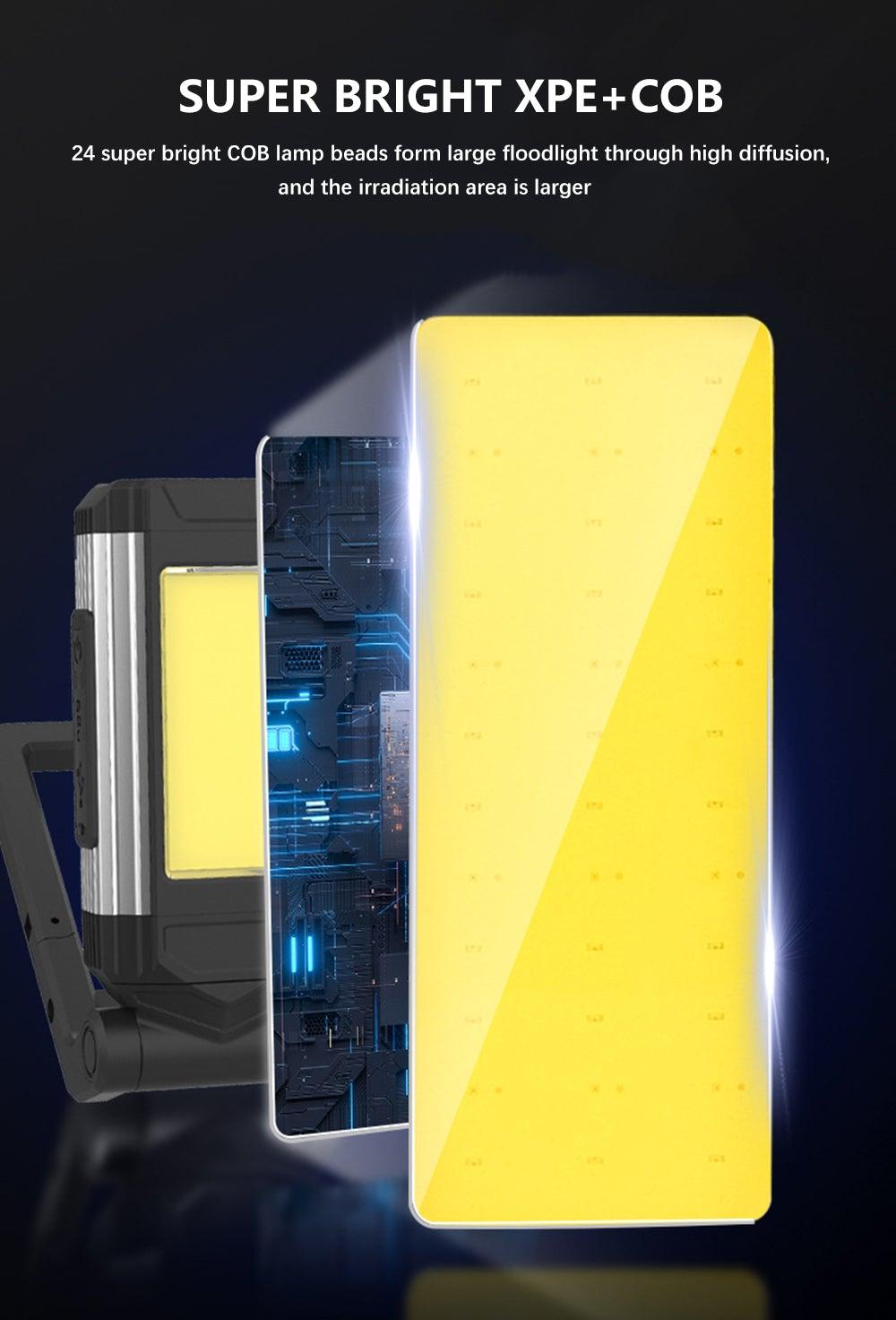 - SUPER BRIGHT: 30W max, 600 LM COB LED Light built-in two rechargeable 3600 mAh battery and with USB port to charge the mobile or other devices. Made of sturdy and durable ABS,PS and iron material.