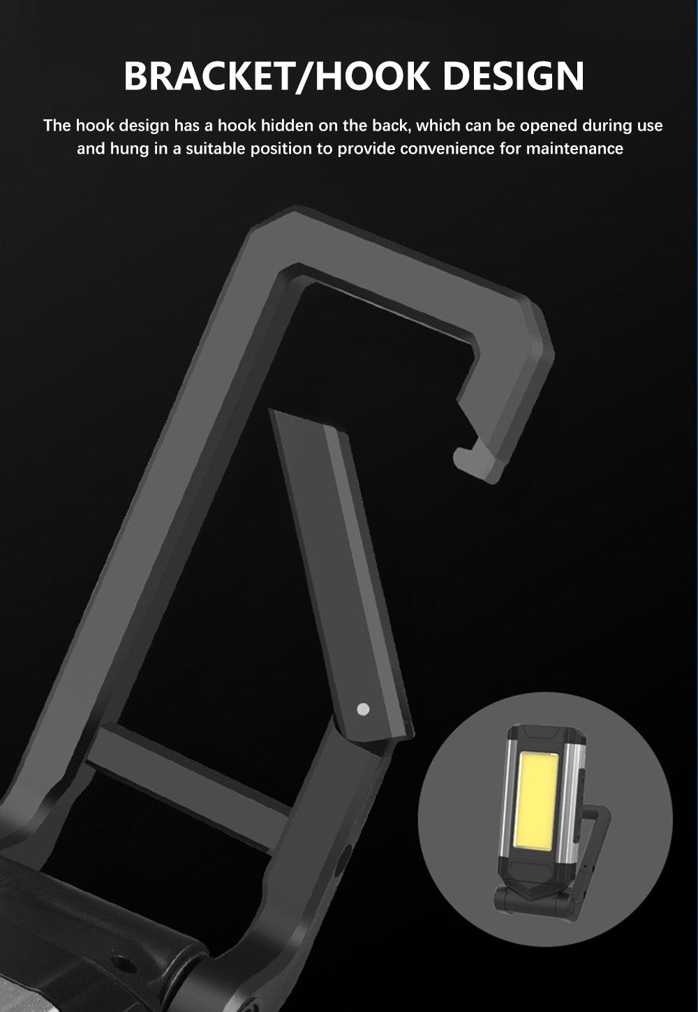 - HOOK & MAGNET: Built-in super-strong magnet can be attached to metal surfaces such as car bodies to provide temporary lighting. The hook design allows the lamp to be hung on objects such as tents.